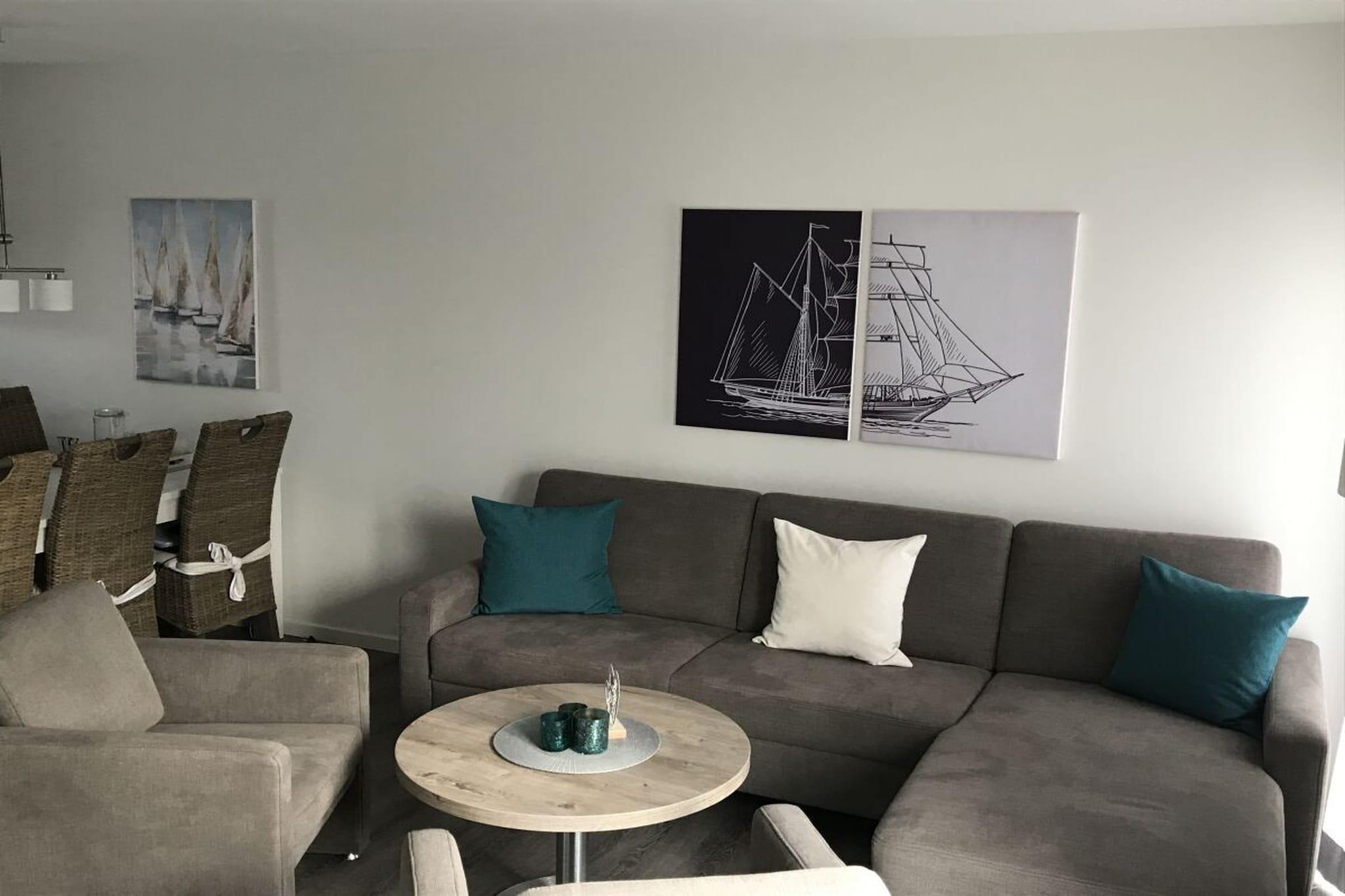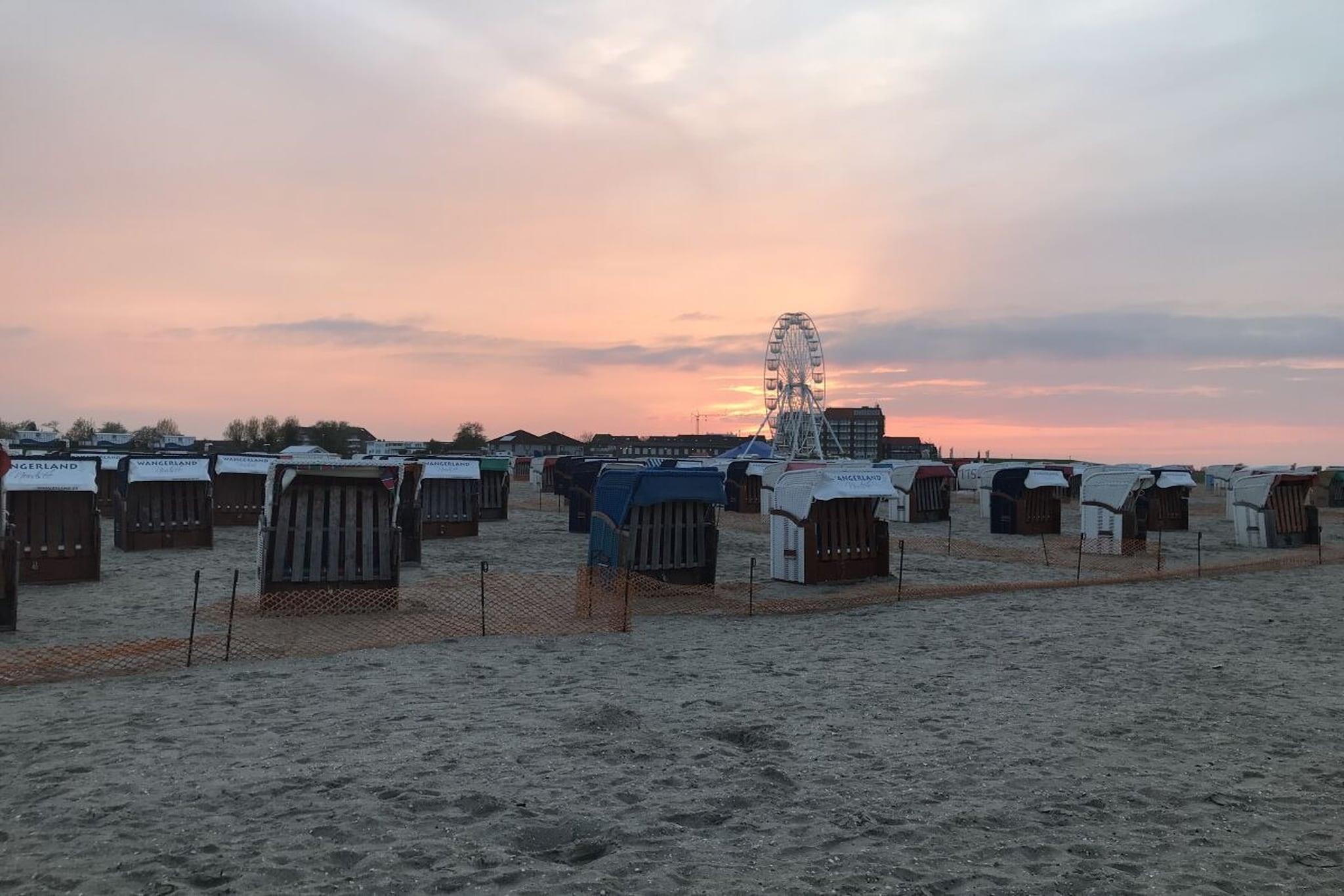 Gemütliches Ferienhaus Nordsee-Koje nahe dem Strand von Schillig mit Sauna und Meerblick-Balkon.