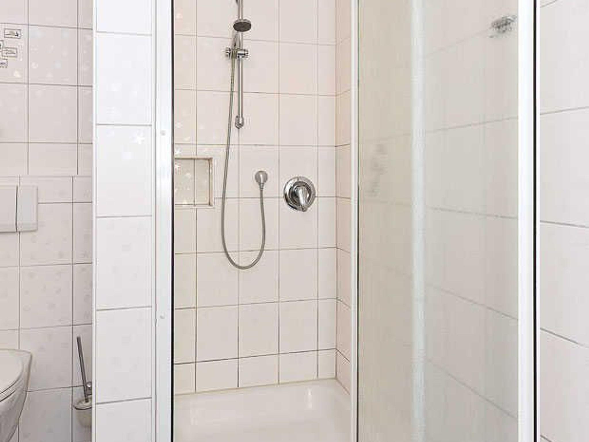Badezimmer mit Dusche, Waschtisch und WC