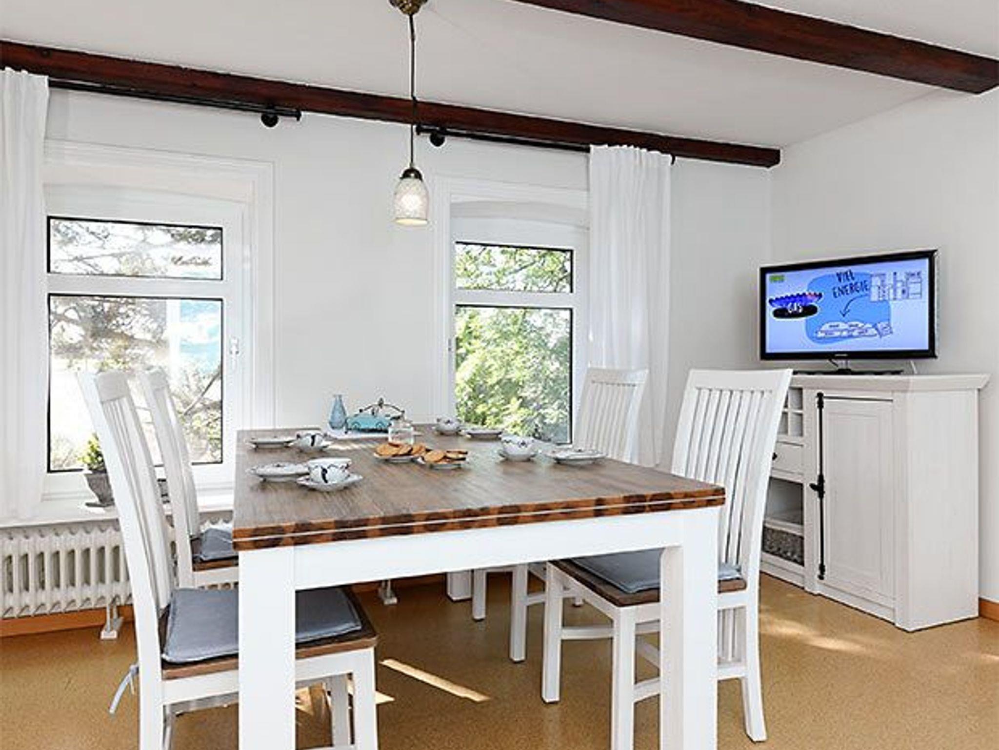 Größe ca. 60 Quadratmeter, Wohnraum mit integrierter Küche, Schlafzimmer, zweites separates Schlafzimmer/Kinderzimmer, Badezimmer mit Dusche, Waschtisch und WC, Obergeschoss, optimal für 2 bis 4 Personen.