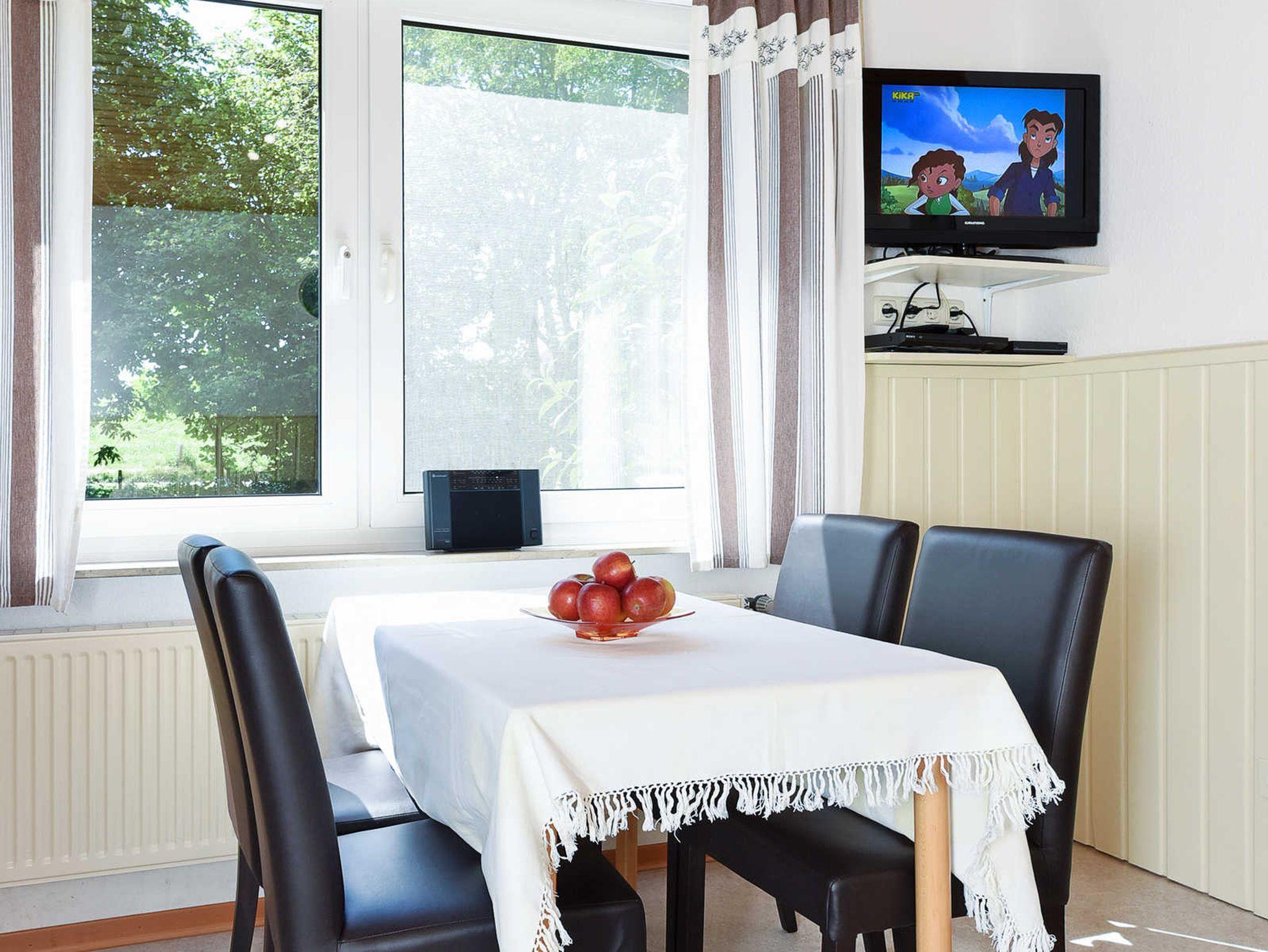 Größe ca. 65 Quadratmeter, Wohnraum mit integrierter Küche, Schlafzimmer, Kinderzimmer, Badezimmer mit Dusche,, Waschtisch und WC, Erdgeschoss, optimal für 2 bis 4 Personen und zusätzlich ein Kleinkind.