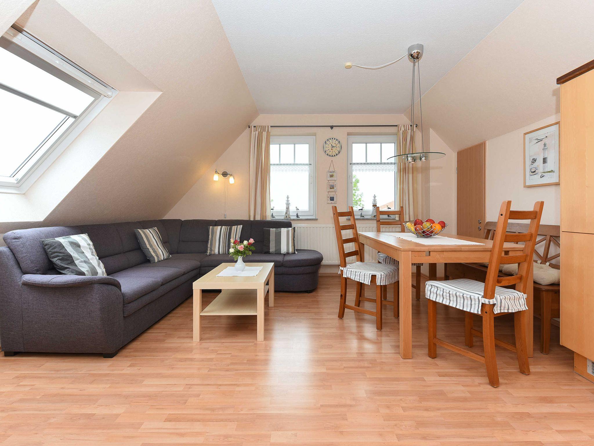 Größe ca. 65 Quadratmeter, Wohn-Küche, Schlafzimmer, zweites separates Schlafzimmer/Kinderzimmer, Badezimmer mit Dusche, Waschtisch und WC, Parkplatz (reserviert), optimal für 2 bis 5 Personen.