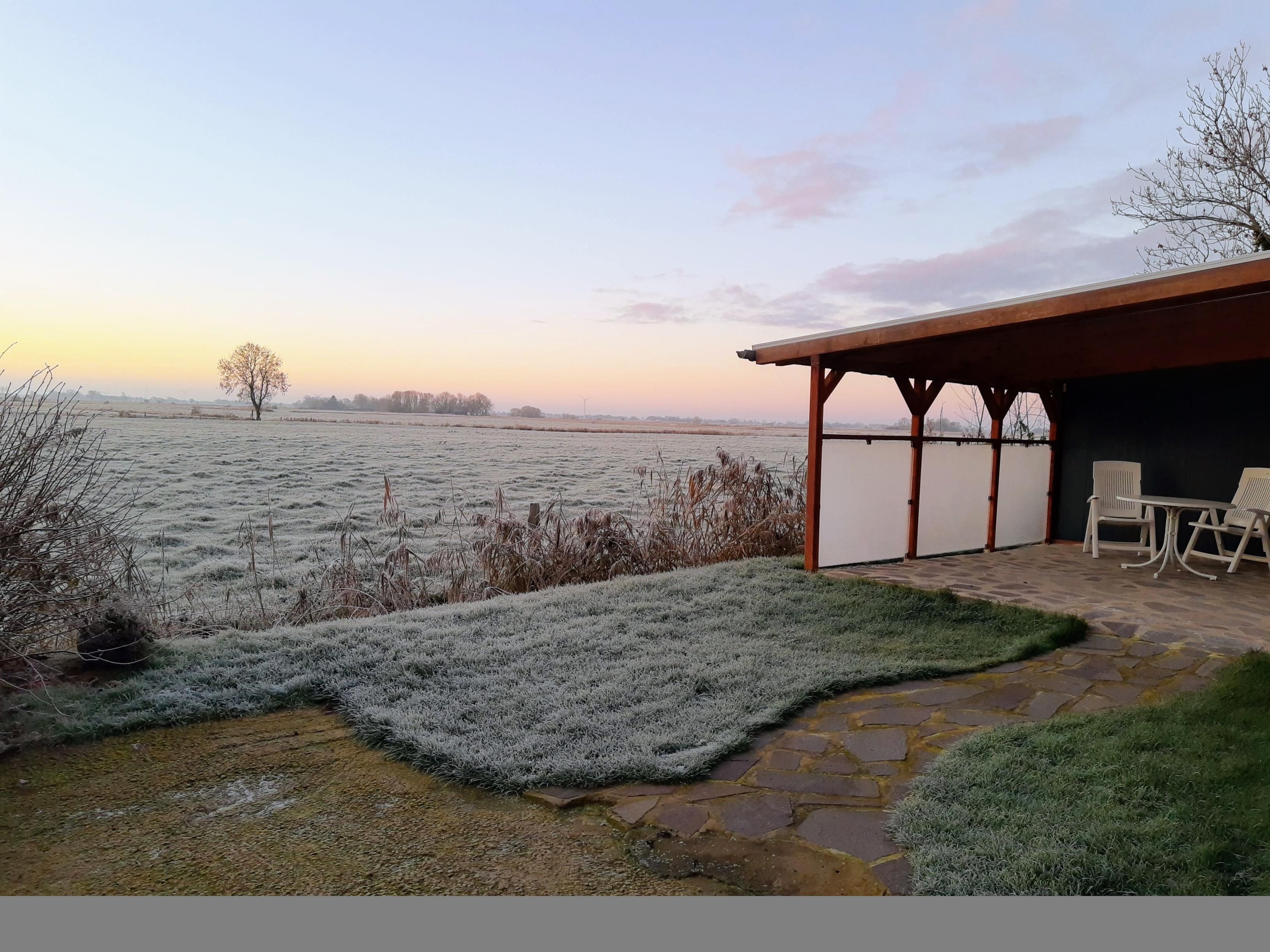 Die Ferienwohnung 1 mit ebener Terrasse und einem wunderschönen Ausblick über Wiesen und Felder und ist ca. 45qm groß.