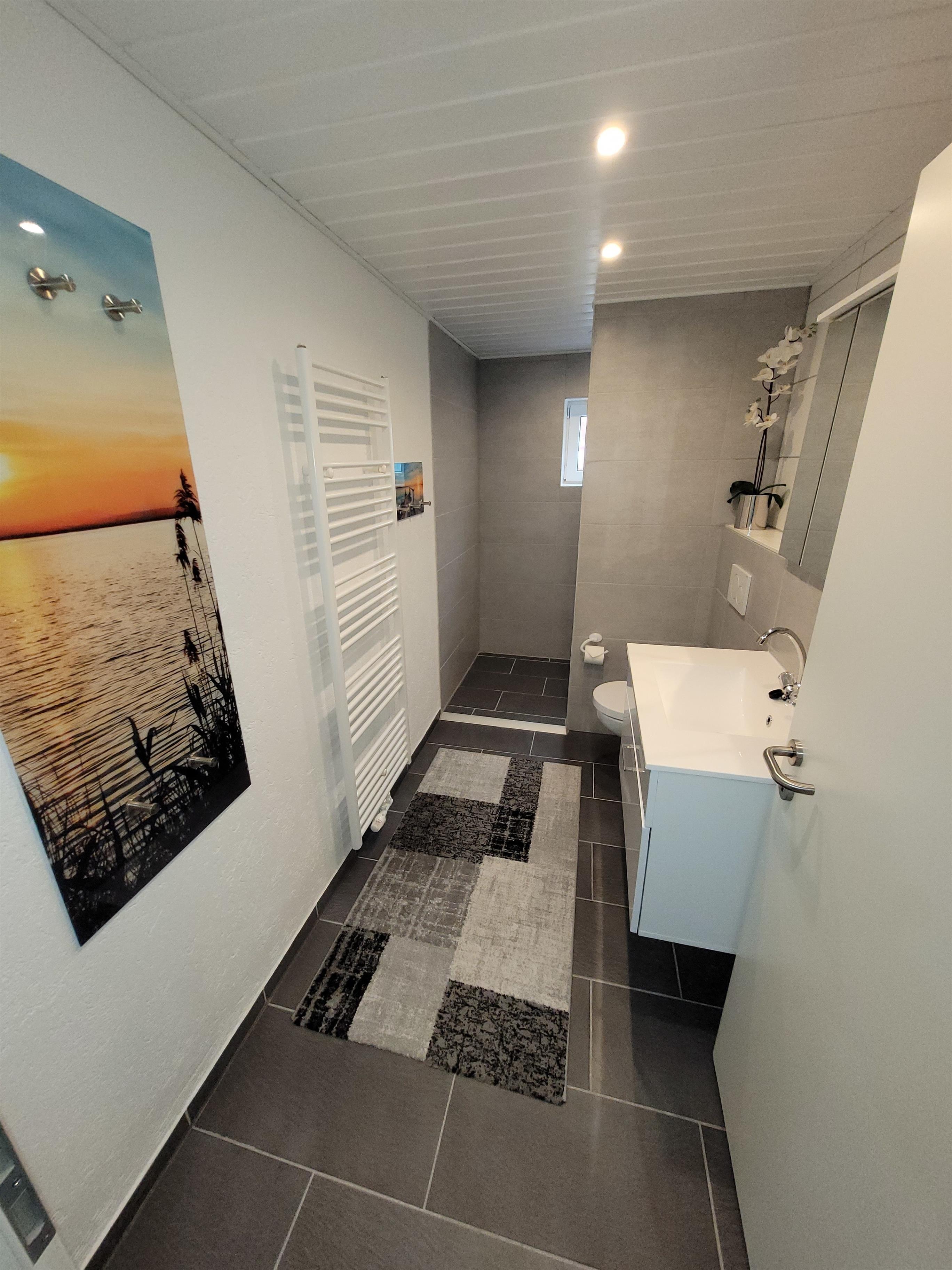 Direkt von der Südterrasse gelangt man in die Küche, welche mit Cerankochfeld, erhöhtem Backofen, Geschirrspüler, Mikrowelle, Kühl- und Gefrierkombination, Toaster, Kaffeemaschine, Eierkocher etc. ausgestattet ist. Eine kleine Sitzecke rundet die gemütliche Küche ab. Das moderne Badezimmer hat eine große, ebenerdige Dusche, einen Waschtisch sowie den Handtuchheizkörper. Das ausziehbare Sofa im Wohnbereich lädt zum Kuscheln ein und kann auch als Bett verwendet werden. Der Flachbildschirm bietet Netflix- und Prime-Funktion mit selbstverständlich kostenfreien WLAN-Zugang. Zur Ausstattung dieser Wohnung gehört auch eine Radio-Stereoanlage mit CD-Player und USB-Eingang. Im angrenzenden Schlafzimmer bietet ein Boxspringbett hohen Schlafkomfort. Das Schlafempfinden ist weich und bequem und nicht hart. Das Rauchen in der Wohnung ist nicht gestattet.