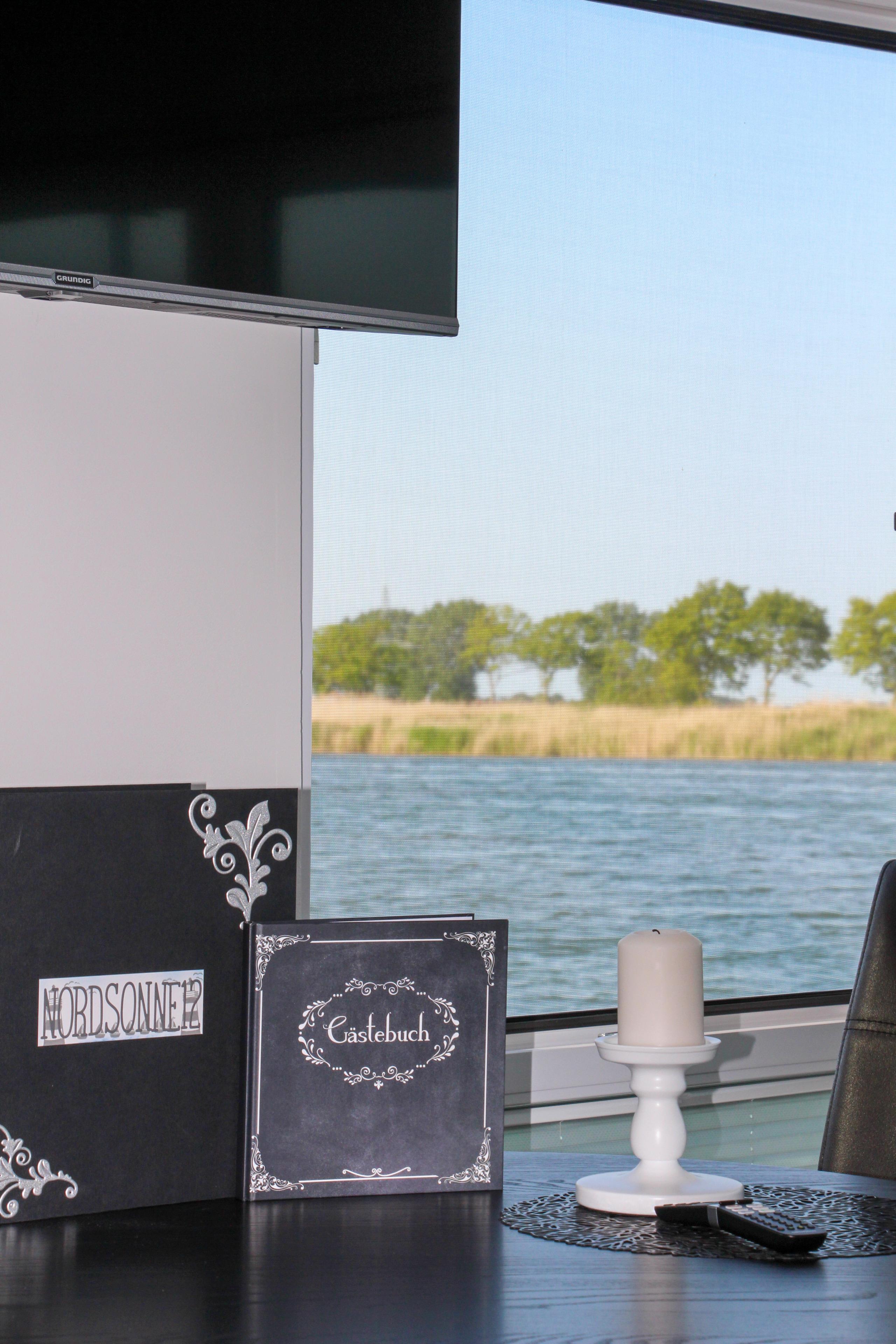Erleben Sie Komfort und Natur auf einem modernen Hausboot mit Sauna im idyllischen Wangerland am Wangermeer.