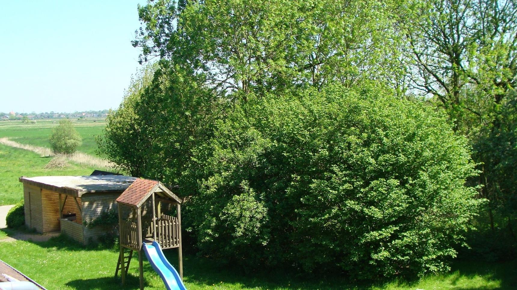 Das Bauernhaus liegt in landwirtschaftlich geprägter Umgebung zwischen Weiden und Feldern. Ein großer, naturnaher Garten mit altem Baumbestand und Feuerstelle bietet verschiedene Sitzmöglichkeiten in der Sonne oder im Schatten. Damit Ihnen das Wetter keinen Strich durch einen gemütlichen Grillabend machen kann, gibt es auch eine geschützte Überdachung. Grill und Gartenmöbel sind vorhanden. Für Kinder gibt es eine Rutsche, einen Sandkasten und zwei Schaukeln.