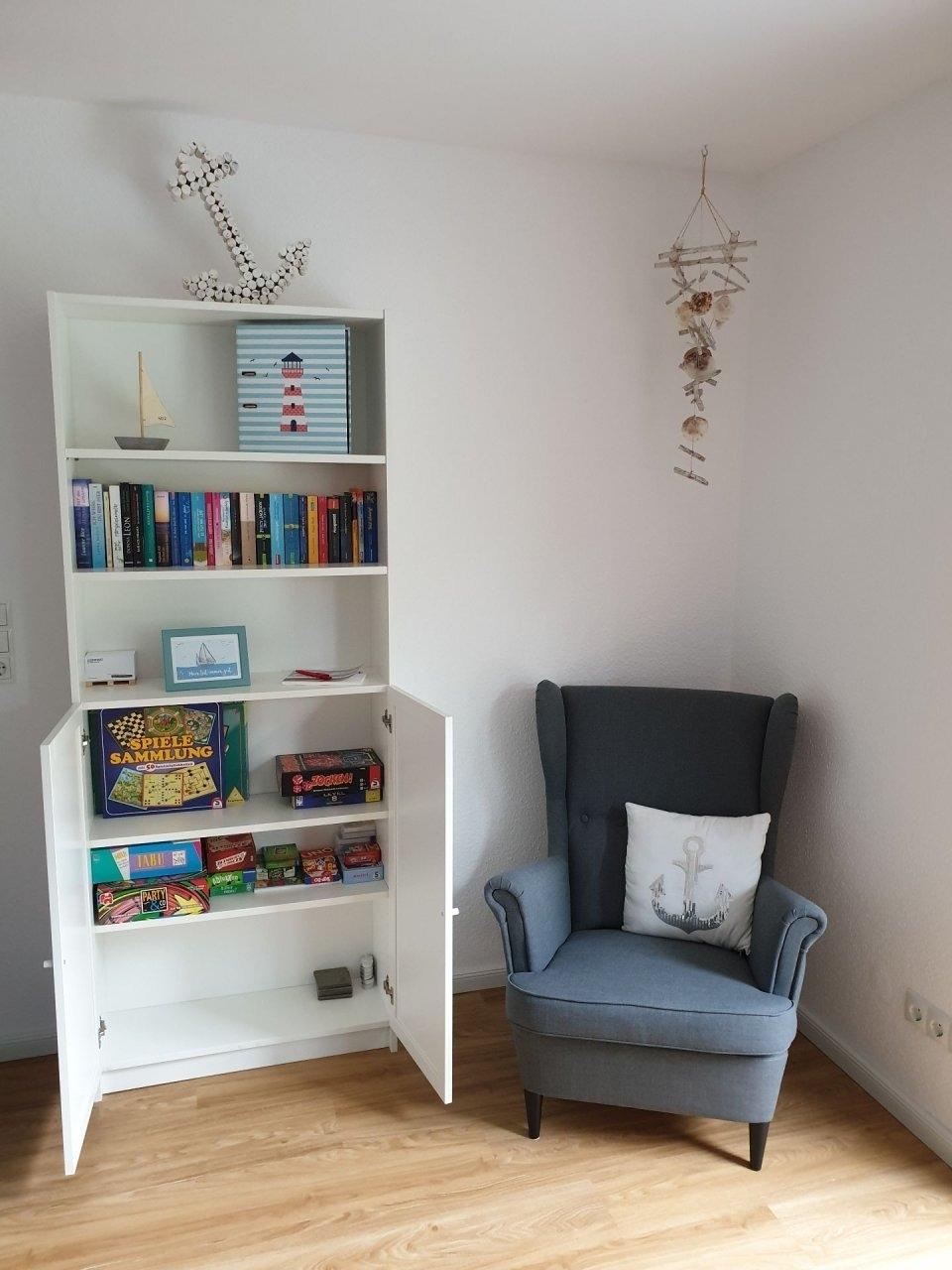 Ein Video von der Wohnung finden Sie unter folgendem Link: https://www.youtube.com/watch?v=RqB_KrCsjssDie moderne Ferienwohnung mit einer Wohnfläche von ca. 97 m², für max. 8 Personen liegt im Erdgeschoss eines Zweifamilienhauses in einer Sackgasse. Sie liegt nur wenige Minuten vom Meer, Strand, Hafen, Einkaufsmöglichkeiten und Schwimmbad entfernt. Sie verfügt über 3 Schlafzimmer die wie folgt aufgeteilt sind: Ein großes Elternschlafzimmer mit einem Boxspringbett 180x200 cm Bett und einem Kinderbett. Das zweite Schlafzimmer hat ein 160x200 cm großes Bett und das dritte Schlafzimmer hat ein Ausziehbett das sich von 90x200 auf 180x200 auf einer zweiten Ebene erweitern lässt. Im Wohnzimmer befindet sich zusätzlich ein Schlafsofa 140x200 cm, welches für zwei weitere Personen eine Schlafmöglichkeit bietet. Die Küche ist von dem großen Wohnzimmer abgetrennt. Es ist ein Gäste-WC und ein Badezimmer mit Dusche und Badewanne vorhanden. Im Abstellraum finden Sie eine Waschmaschine. Zwei Terrassen laden zum Sonnenbaden oder gemütlichen Beisammensein zu jeder Tageszeit ein. An unsere kleinen Feriengäste haben wir auch gedacht. Die Steckdosen haben einen erhöhtem Berührungsschutz. Spiele, Bücher, Spielzeug und eine Kinderküche sind vorhanden.Mit Rücksicht auf die nicht rauchenden Feriengäste und Allergiker haben wir die Ferienwohnung zur "rauchfreien und tierfreien Zone" erklärt. Selbstverständlich ist das Rauchen auf den beiden Terrassen gestattet. Die Ferienwohnung liegt in einer Sackgasse, dort finden Sie auch Ihren Parkplatz für Ihr Auto. Ebenso gibt es eine abschließbaren Garage wo Sie z.B. Ihre Fahrräder unterbringen können.