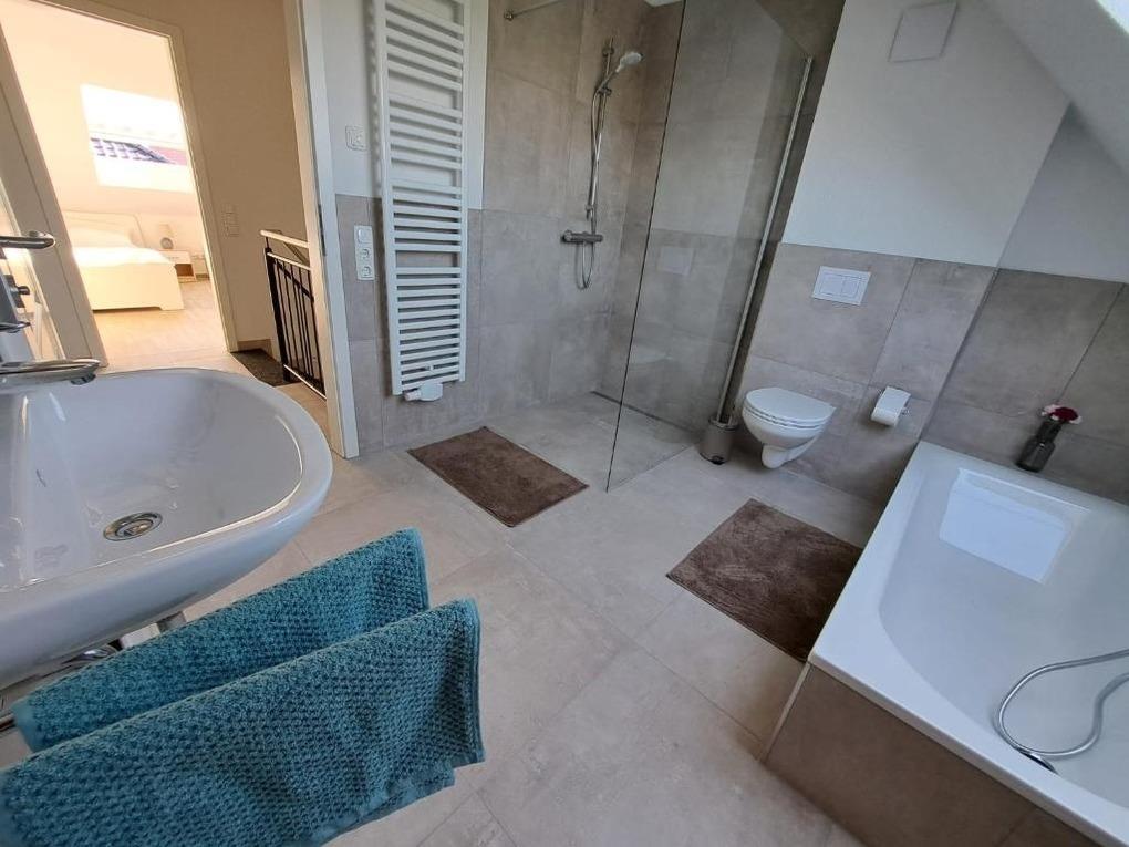 Unser Ferienhaus liegt nur 150 Meter vom Wasser entfernt und bietet Platz für bis zu sechs Personen sowie Ihre Haustiere. Das Erdgeschoss umfasst eine geräumige Wohnküche mit bodentiefen Fenstern, die einen direkten Zugang zur großzügigen Terrasse ermöglichen. Zusätzlich gibt es ein Gäste-WC, einen breiten Flur mit Garderobe und einen Hauswirtschaftsraum mit Waschmaschine. Im Obergeschoss befinden sich drei gemütliche Schlafzimmer sowie ein Badezimmer mit einer begehbaren Dusche und einer Badewanne.