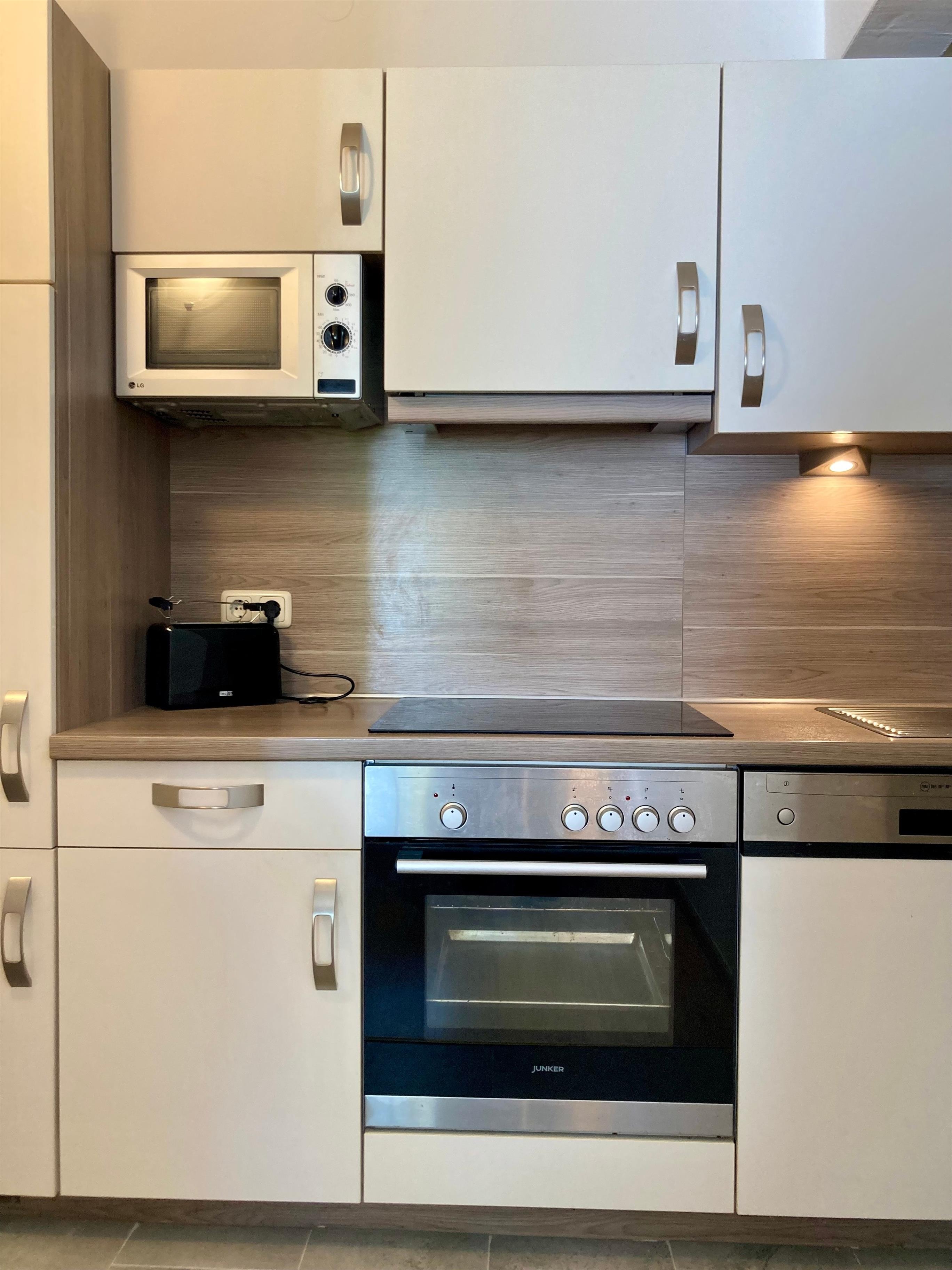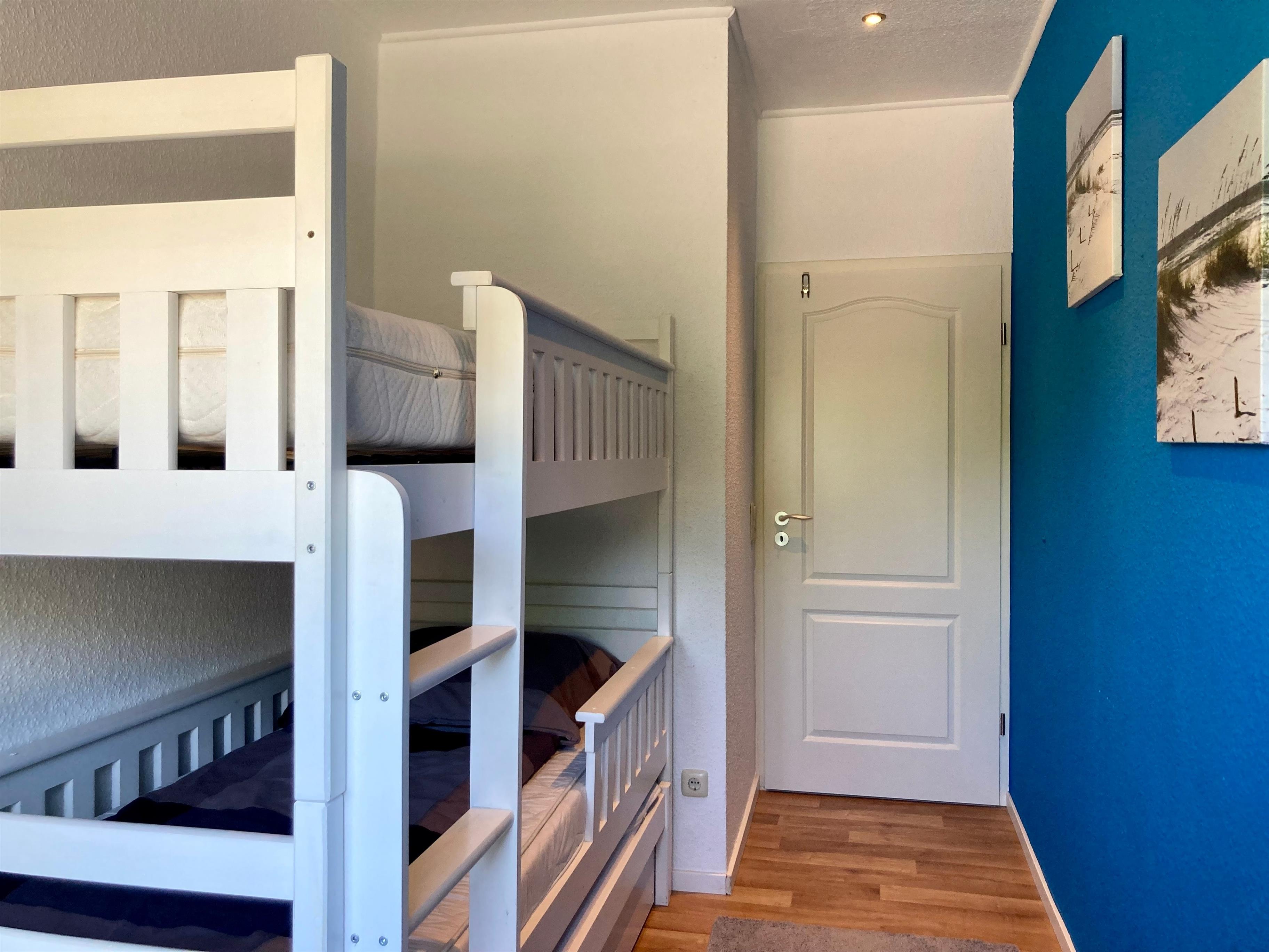 Separater Eingang, kleiner Flur. Wohnraum mit Sitzgruppe, Sat-TV, Internetzugang (wlan, gratis) und Essecke für 4 Personen. Zum Wohnraum offene Küche (4 Kochfelder, Backofen, Mikrowelle, Geschirrspüler, Kaffee-/Kaffeepadmaschine, Kühlschrank (Gefrierfach), Toaster, Wasserkocher). Doppelzimmer. Schlafzimmer mit Etagenbett. Dusche/WC, mit Fön und Waschmaschine (Toplader).