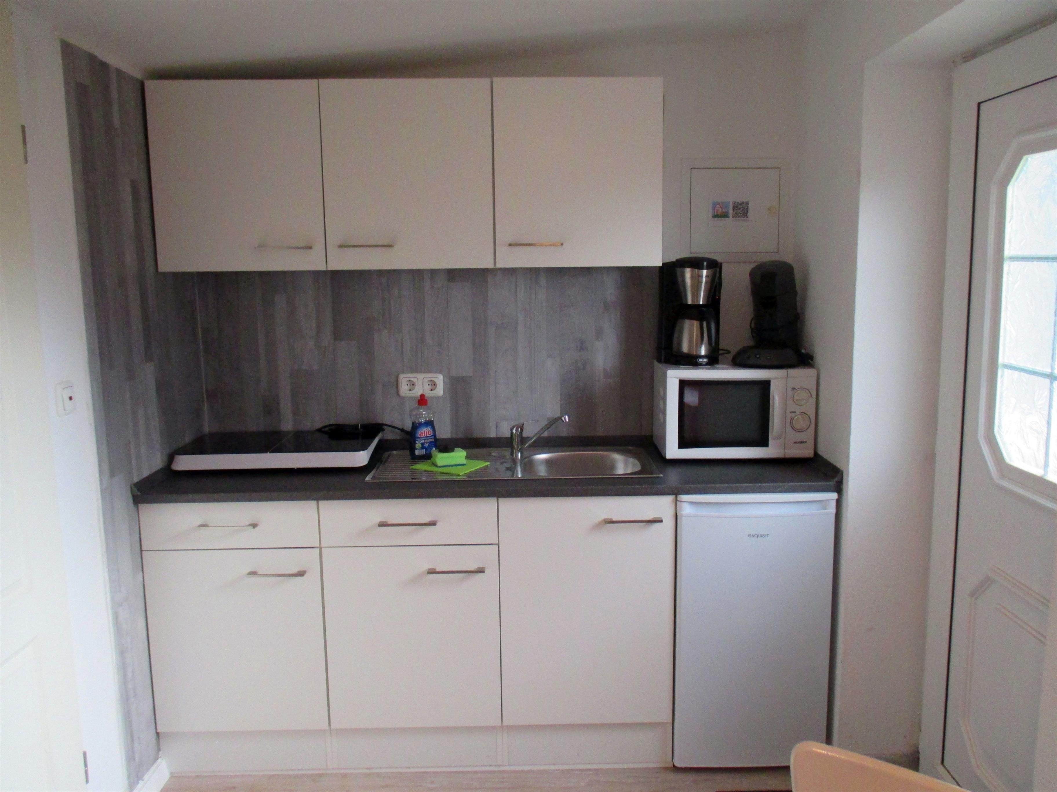 Die Küche ist mit ausreichend Geschirr, Kochutensilien und den notwendigen Elektro-Kleingeräten (Kaffeemaschine, Kaffee-Padautomat, Toaster, Wasserkocher, Eierkocher, Raclette- und Fonduegerät) ausgestattet.