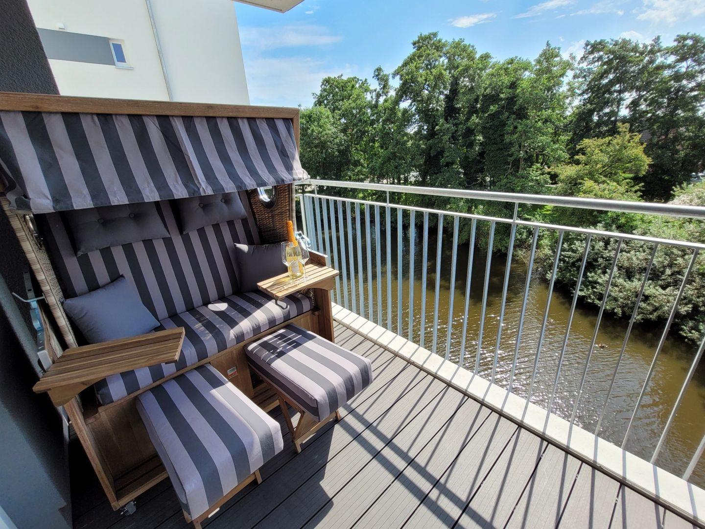 Moderne, hochwertige Ferienwohnung, Sauna, großer Balkon, strandnah