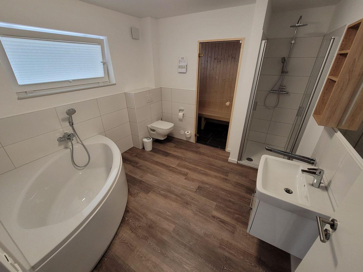 An stürmischen und/oder regnerischen Tagen kann das Badezimmer mit eigener Sauna und seiner Vollausstattung schnell zum Wellnesstempel werden.