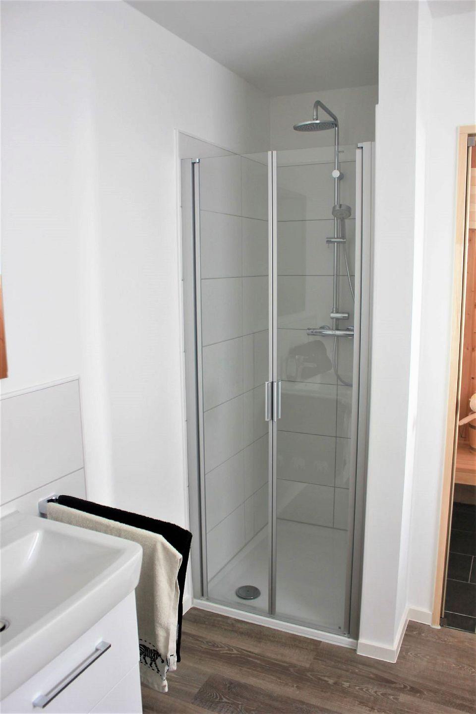 An stürmischen und/oder regnerischen Tagen kann das Badezimmer mit eigener Sauna und seiner Vollausstattung schnell zum Wellnesstempel werden.