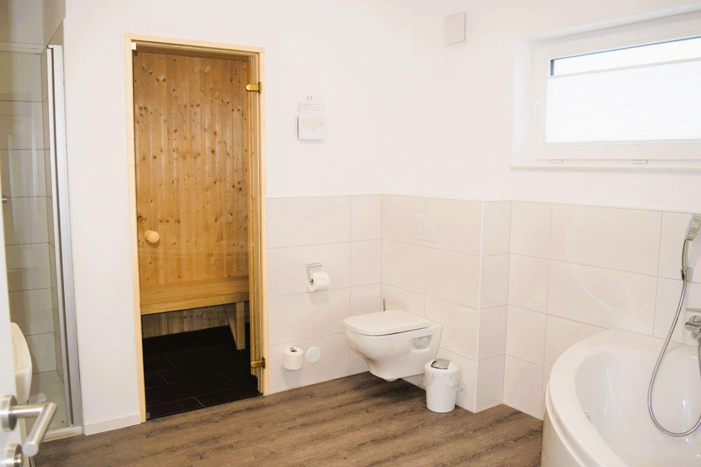 An stürmischen und/oder regnerischen Tagen wird das Badezimmer mit seiner Vollausstattung zum Wellnesstempel. Eine Sauna, eine Regendusche und eine Badewanne bieten den nötigen Komfort zum Relaxen. Saunadüfte für Ihre persönlichen Saunamomente können Sie an unserer Rezeption erwerben.