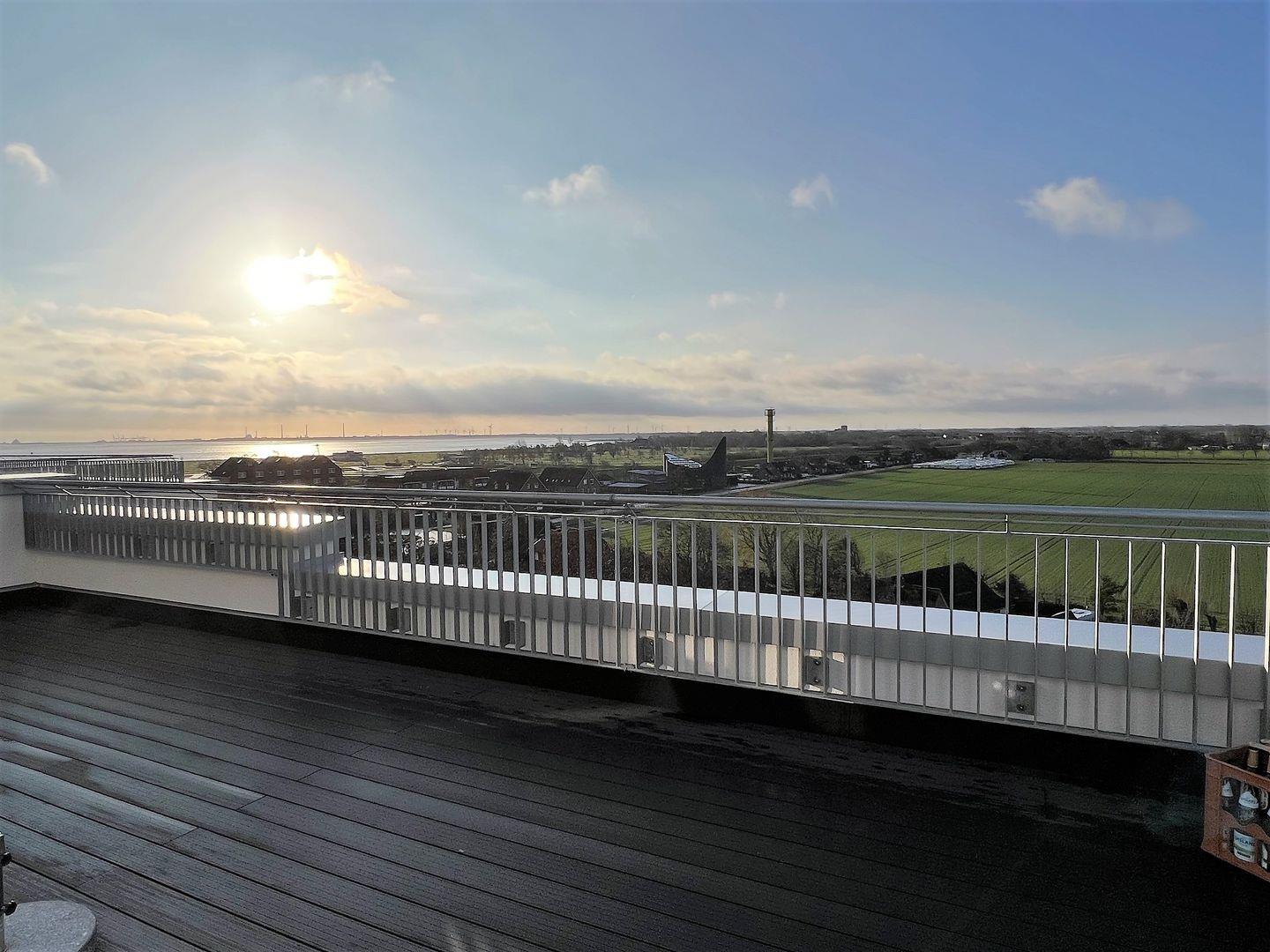 Die große, umlaufende und möblierte Dachterrasse erweitert das Platzangebot unter freiem Himmel um ca. 85 m². Hier erwartet Sie ein traumhafter Ausblick in beachtlicher Höhe.