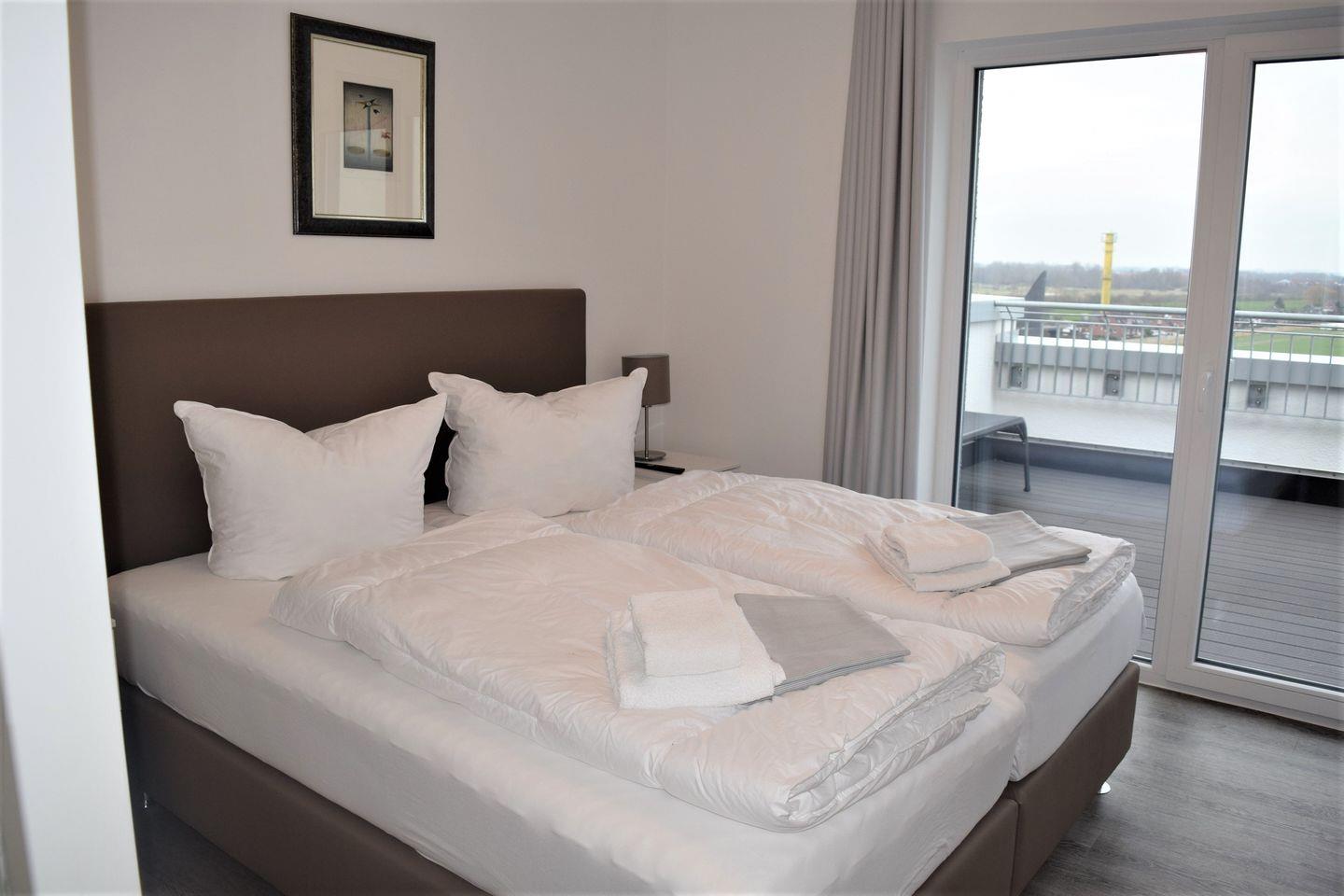 Die Ausstattung der Schlafzimmer mit Boxspringbetten lassen Hotelcharakter zu. Ein Kleiderschrank und ein zusätzlicher Fernseher stehen des weiteren in jedem Schlafzimmer zur Verfügung.