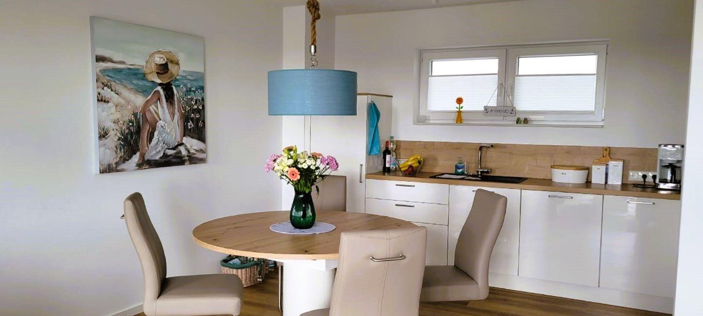 Der Küchenbereich ist modern und offen zum Wohn-Essbereich gehalten und mit einer hochwertigen Einbauküche ausgestattet.