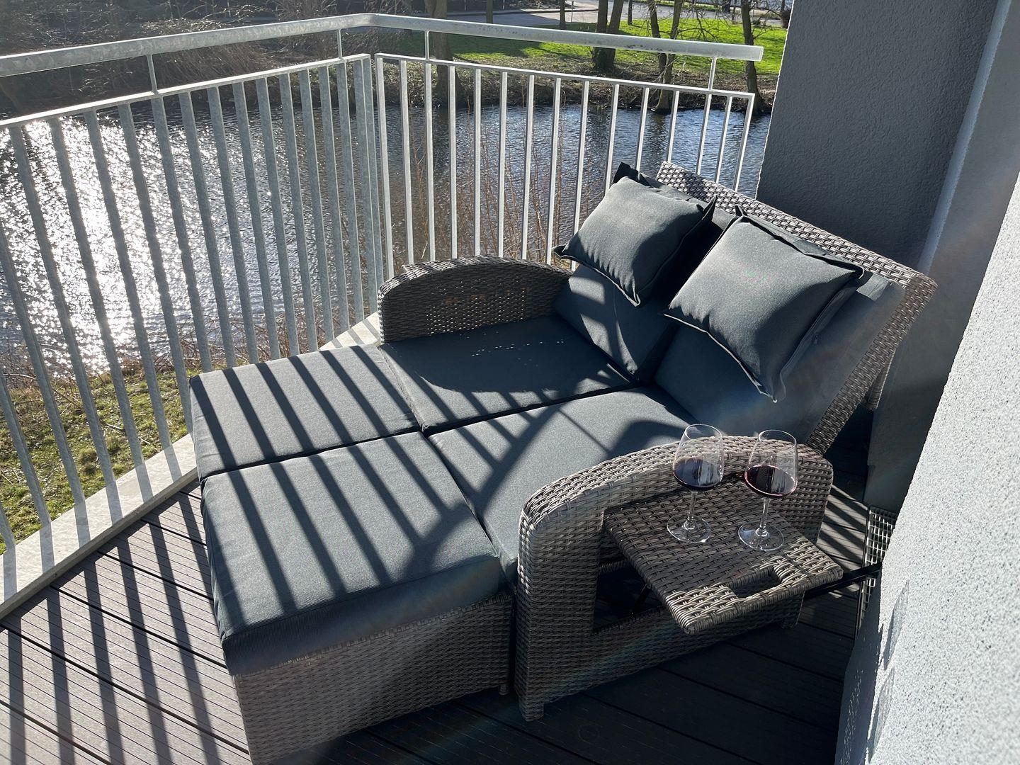 Moderne, hochwertige Ferienwohnung, Sauna, großer Balkon, strandnah