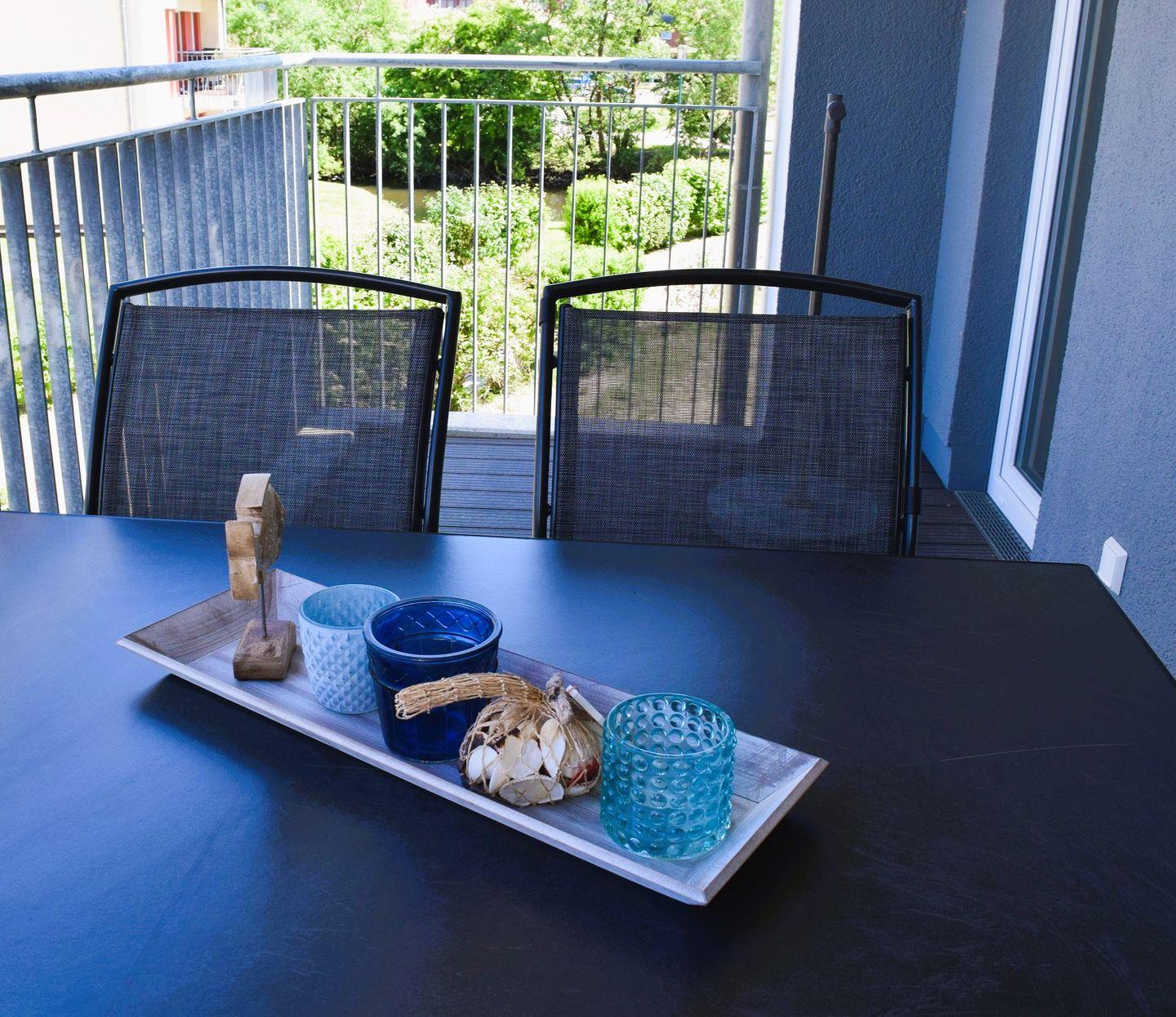 Ein großzügiger, möblierter und überdachter, nach Norden ausgerichteter Balkon lädt zum Verweilen ein.