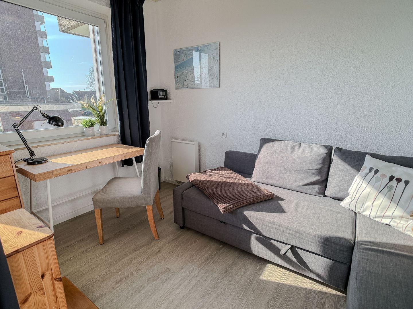 Die Ferienwohnung Sielblick (47 qm) in der ersten Etage eines Hochhauses bietet Komfort und Entspannung.