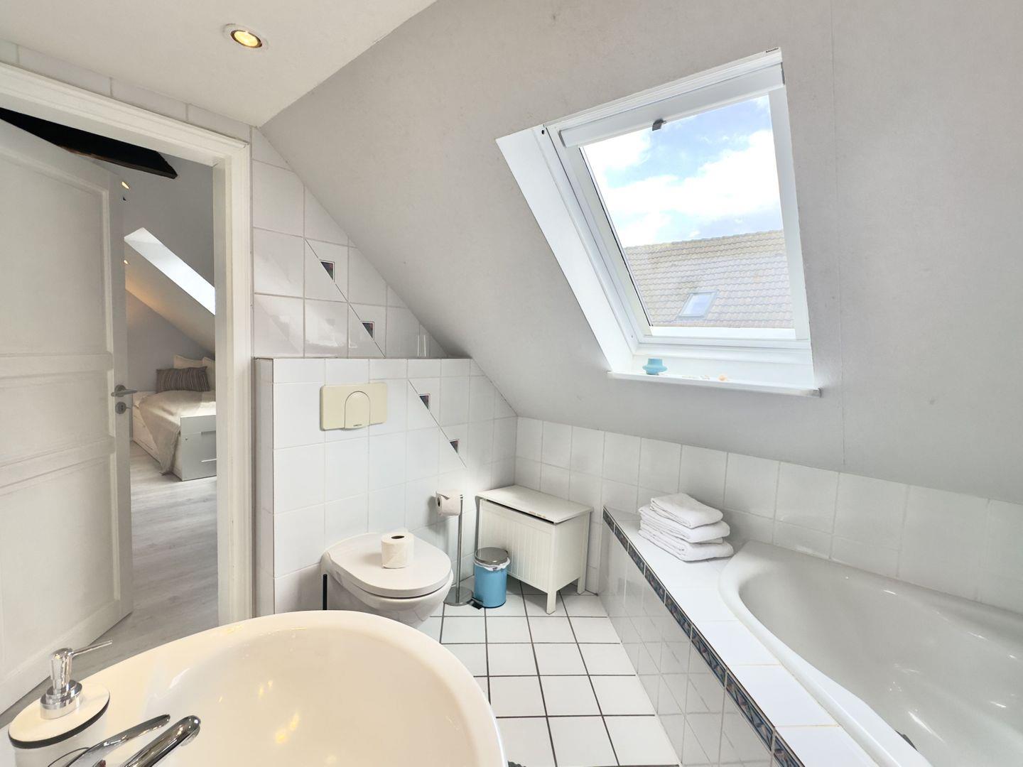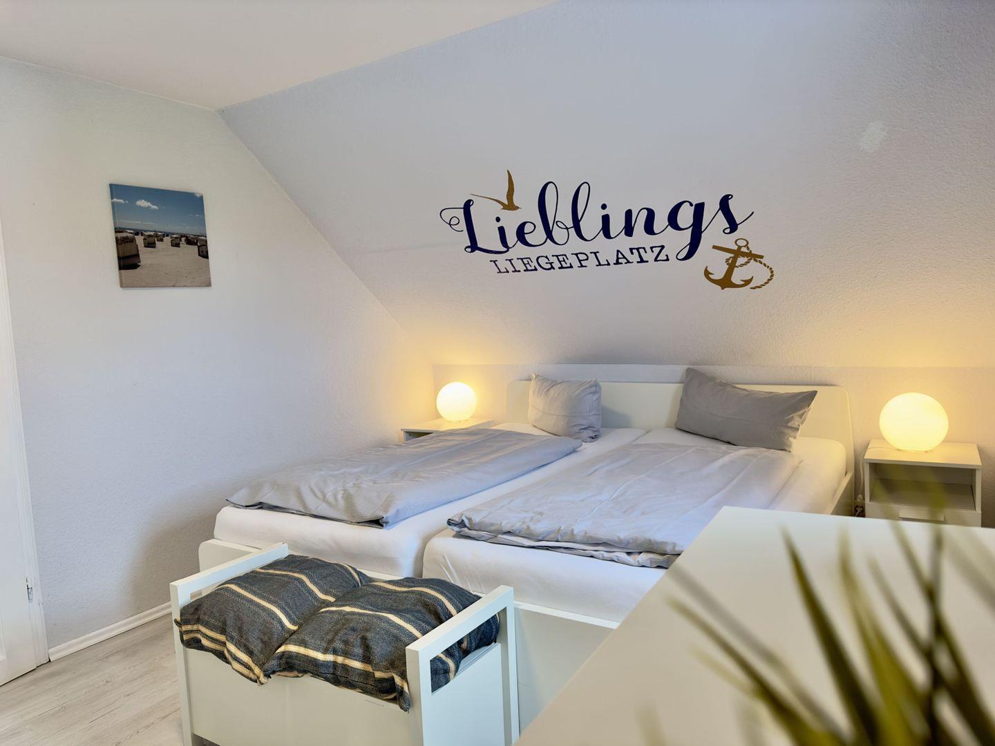 offenen Bereich der Küche . Das Esszimmer bietet Platz für 4 Personen. Im großen, hellen und freundlichen Wohnzimmer wird der Schlafbereich durch eine Kommode abgetrennt und lädt zu gemütlichen Abenden ein. Das dort befindliche Einzelbett verfügt über ein Ausziehbett. Im separaten Schlafzimmer mit großem Einbauschrank lädt ein großes Doppelbett zum erholsamen Schlaf ein. Das Badezimmer verfügt über eine große Eckbadewanne sowie einen großflächigen Spiegel. Der Gartenanteil verfügt über einen eigenen Terrassenbereich mit Gartenmöbeln.