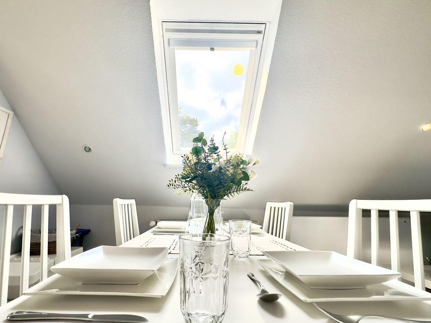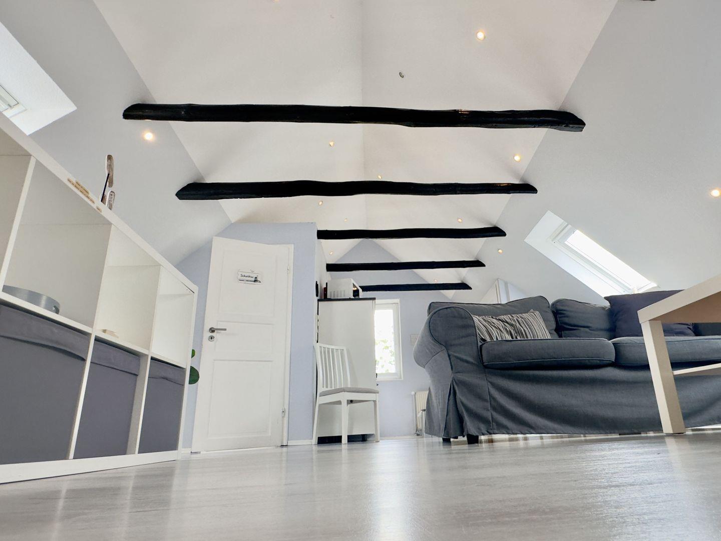 Gemütliche 60qm Ferienwohnung mit Gartenanteil und Terrasse im Dachgeschoss eines Zweifamilienhauses.