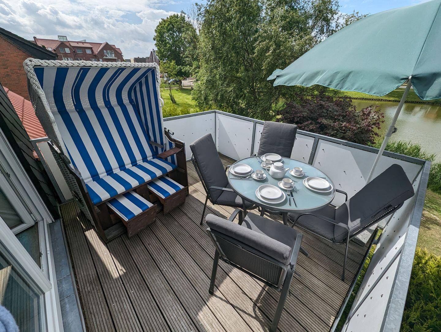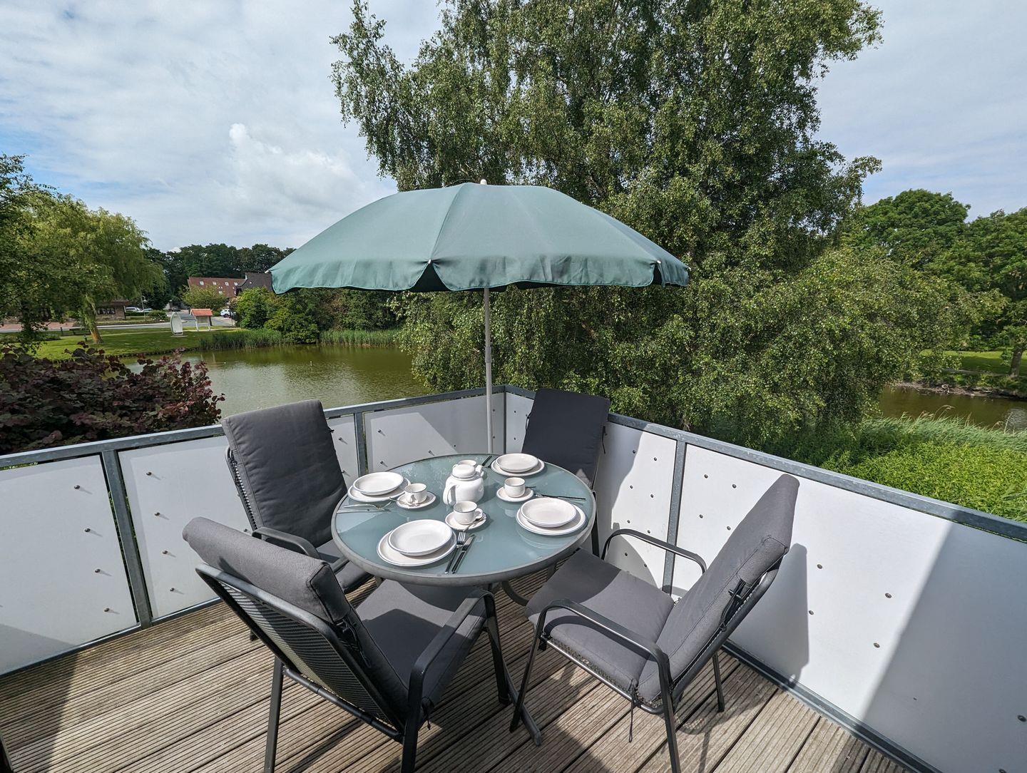 Über den seitlichen Eingang des Hauses erreichen Sie über die Steintreppe Ihre Ferienunterkunft. Der große und helle Wohn-/Essbereich bietet Platz für 4 Personen. Die gut ausgestattete Küche lädt zum gemeinsamen Kochen ein. Das Schlafzimmer bietet ein großes Doppelbett und einen geräumigen Kleiderschrank. Im zweiten Schlafzimmer befinden sich zwei Einzelbetten und ein Kleiderschrank. Das Tageslichtbad verfügt über eine Dusche und einen Wandspiegel. Der große Balkon lädt zu gemeinsamen Stunden im Strandkorb mit Blick auf den Kolk ein.