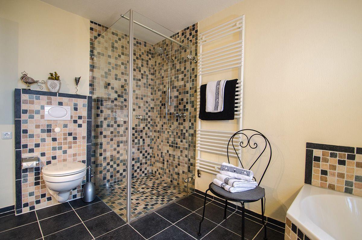 Im großen Bad mit Dusche und separater Badewanne finden Sie zudem eine Münz-Waschmaschine, ein Münz-Trockner ist ebenfalls vorhanden. Außerdem verfügt das Dachgeschoss über ein weiteres, kleines WC.