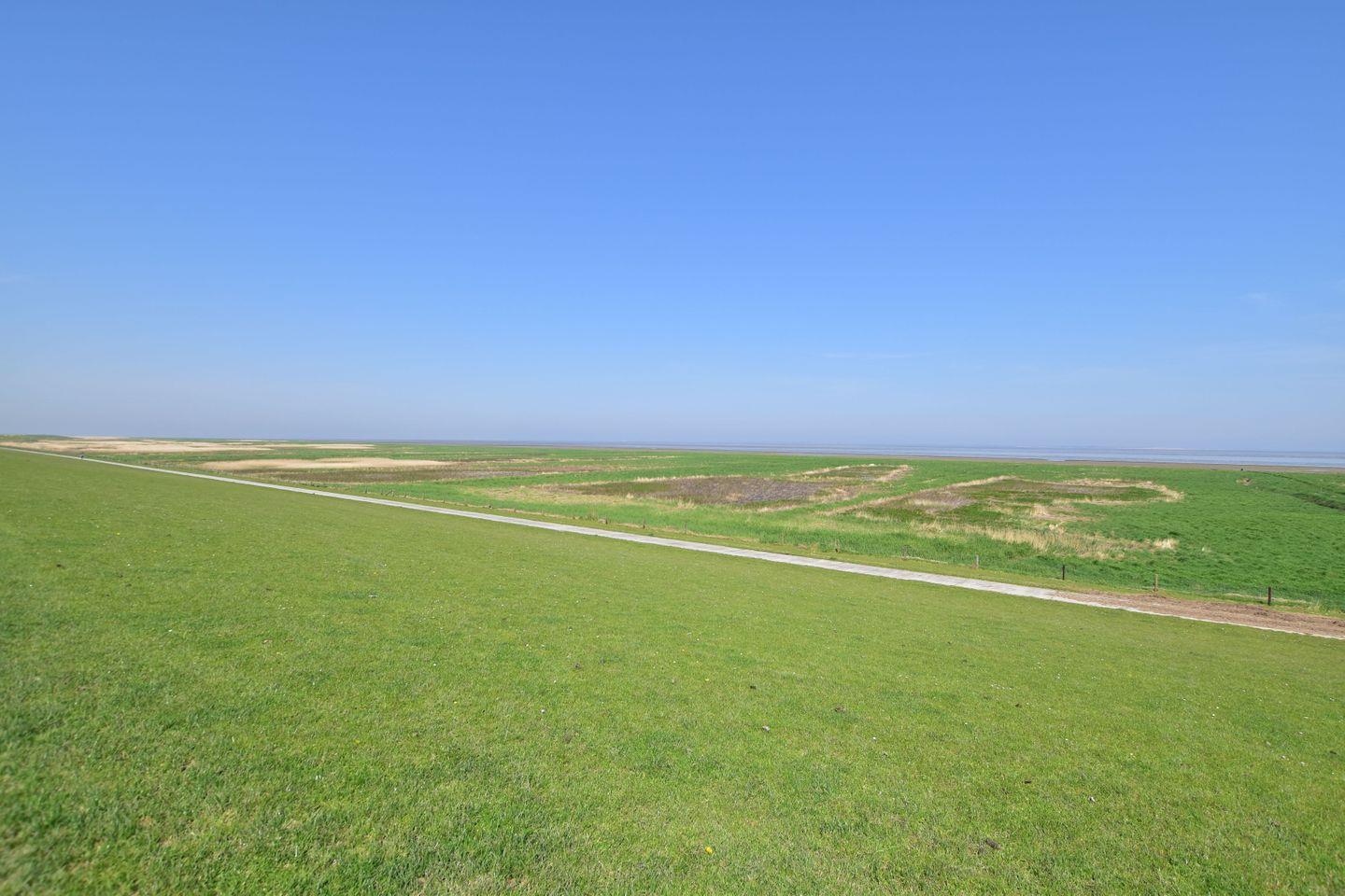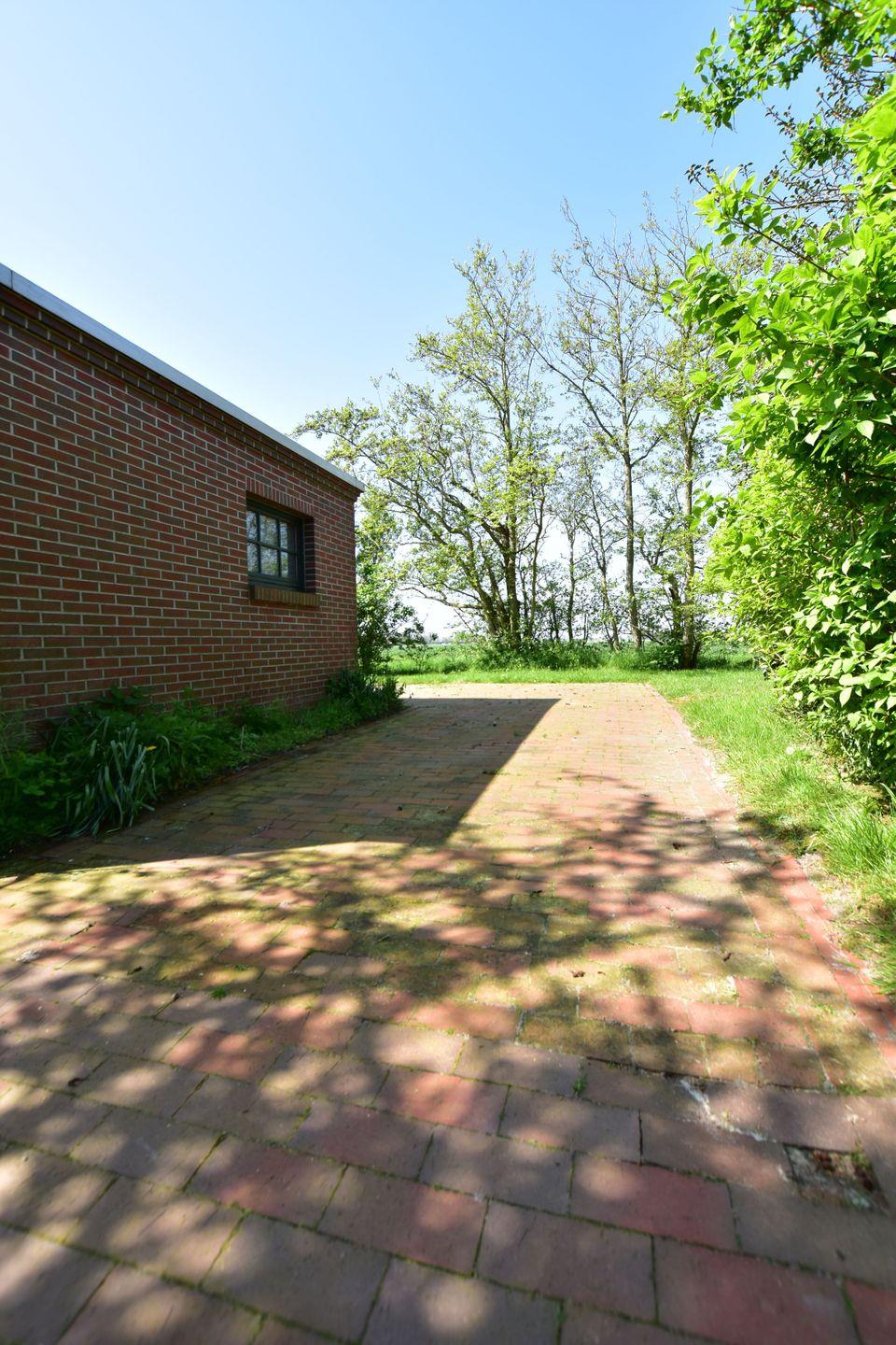 Charmante Kate Küstersmatt am ruhigen Deich mit Garten und Blick auf Spiekeroog und Wangerooge.