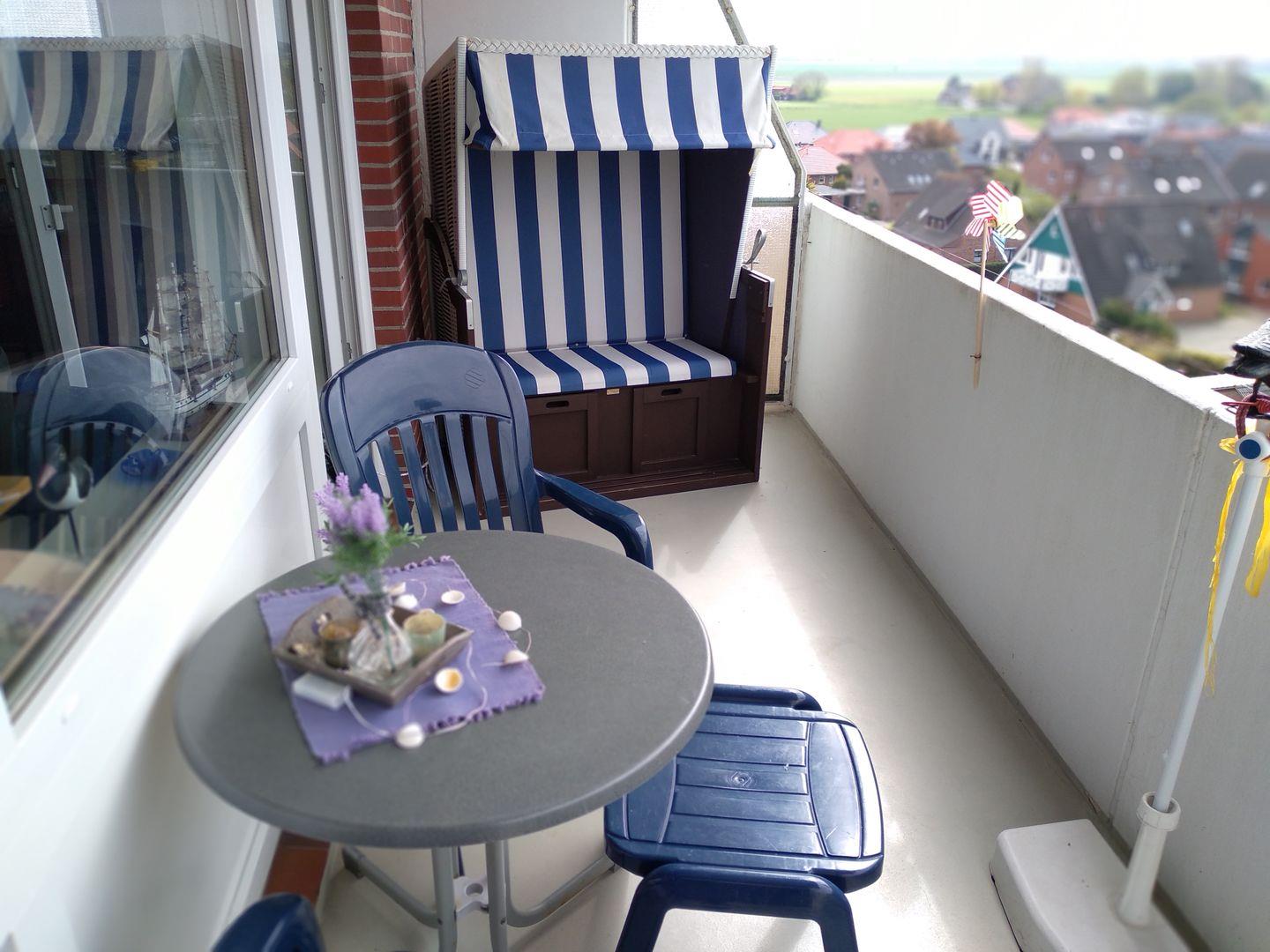 Gemütliche Ferienwohnung "Inselblick" mit großem Balkon, Pool und Strandkorb, ideal für entspannte Tage im Wangerland.
