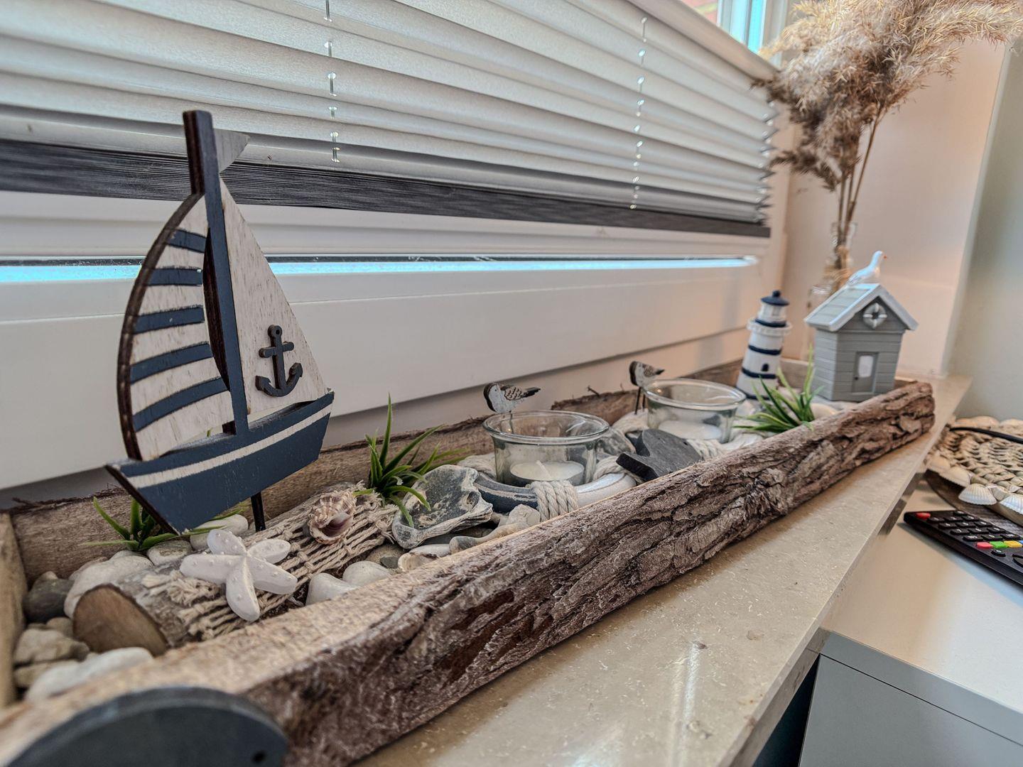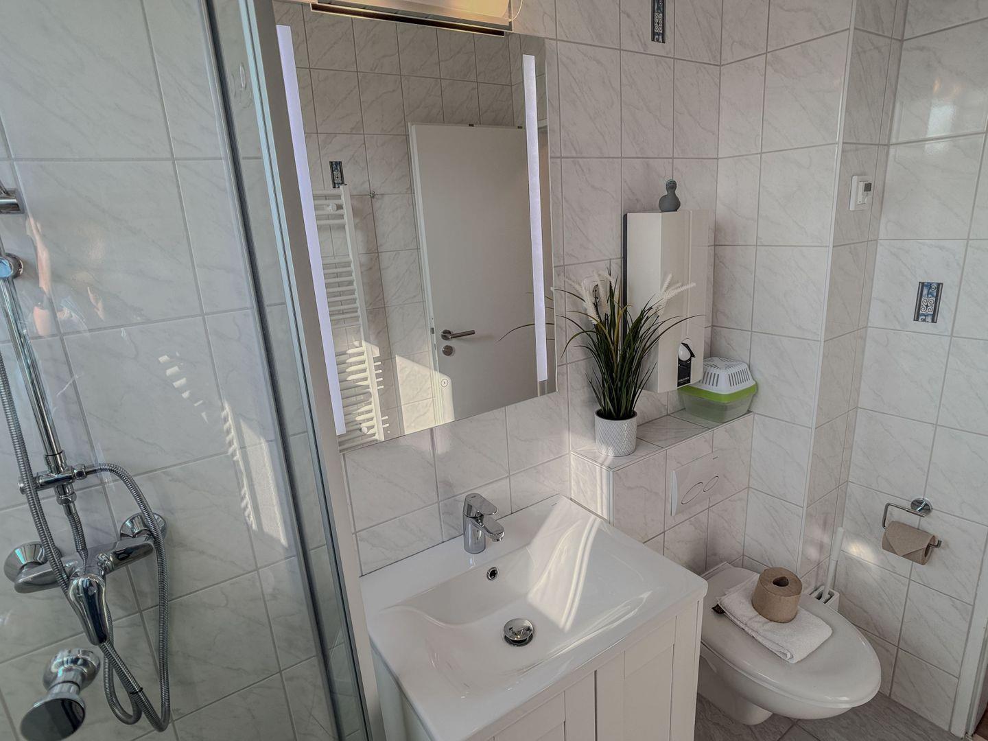 Genießen Sie die ruhige Atmosphäre im Schlafzimmer mit einem komfortablen Boxspringbett, das für erholsamen Schlaf sorgt. Die Holzschiebetür trennt das Schlafzimmer vom Wohnzimmer, das mit einer bequemen Sofa-Ecke und einem Sessel zum Entspannen einlädt. Für Ihre Selbstversorgung ist die kleine Kochnische bestens ausgestattet, und die separate Essgruppe lädt zu gemeinsamen Mahlzeiten ein.