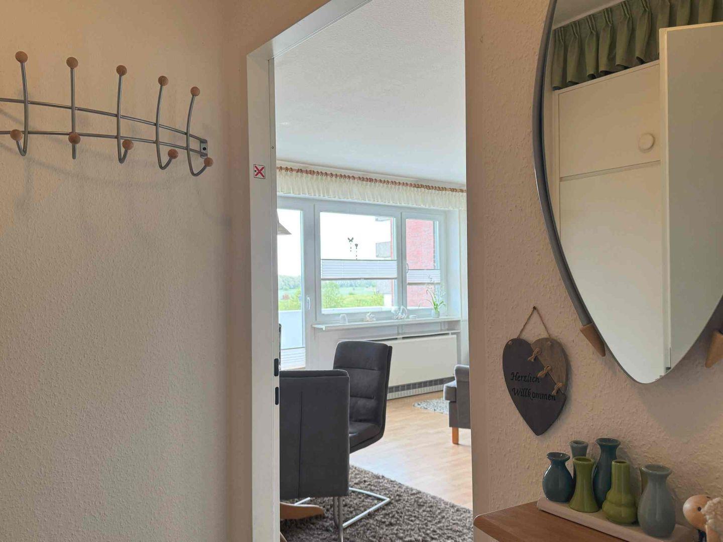 Gemütliche Ferienwohnung mit Balkon und Meerblick in Wangerland für 2-3 Personen mit Internet und Schwimmbad.