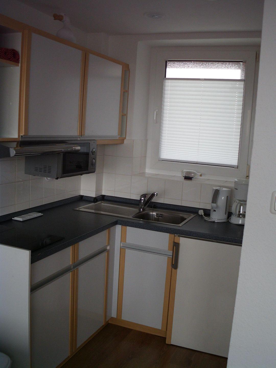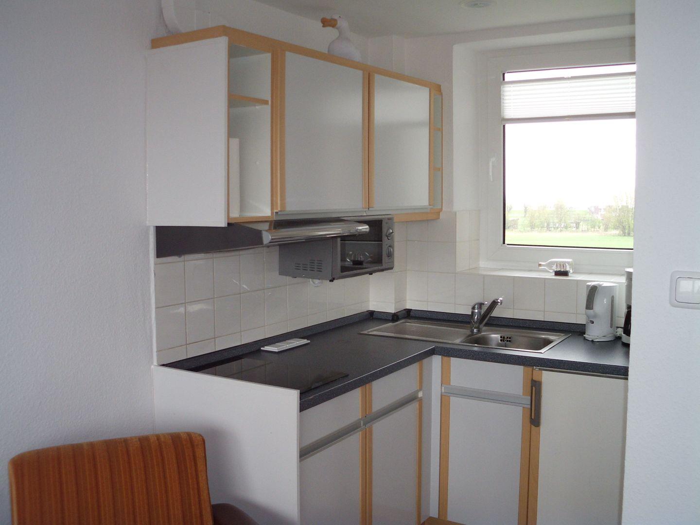 In der funktional eingerichteten Küche genießen Sie über das Küchenfenster den Blick auf das Meer.