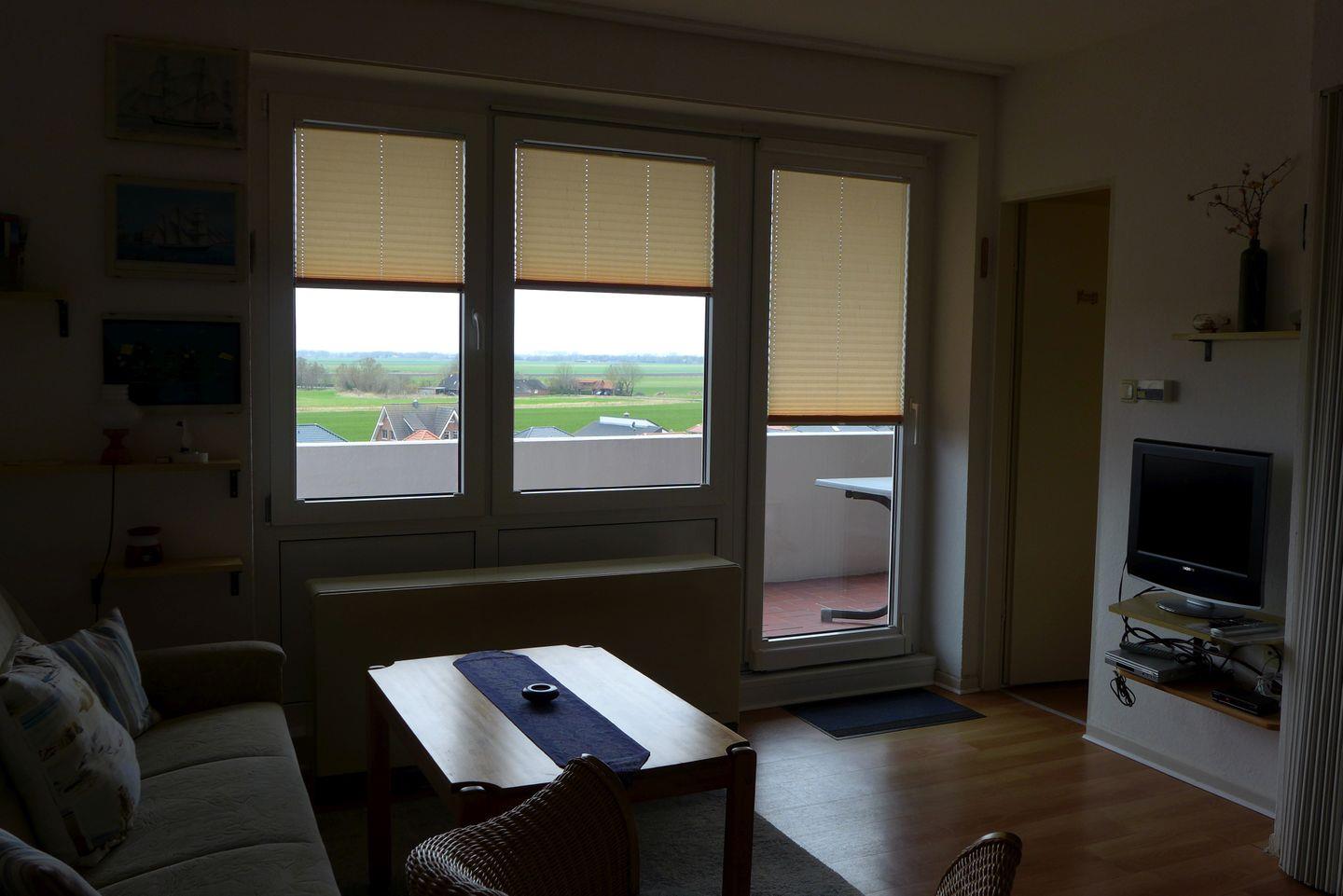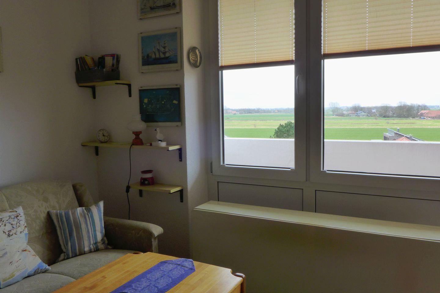 Das Bad wurde kernsaniert. Das Schlafzimmer hat ein Einzelbett und die zweite Schlafgelegenheit befindet sich mit einer Abtrennung im Wohnzimmer. Ideale Wohnung zum Abschalten und zur Ruhe kommen. Großer Balkon zur Südseite und Blick zur Nordsee und ins weite Land.