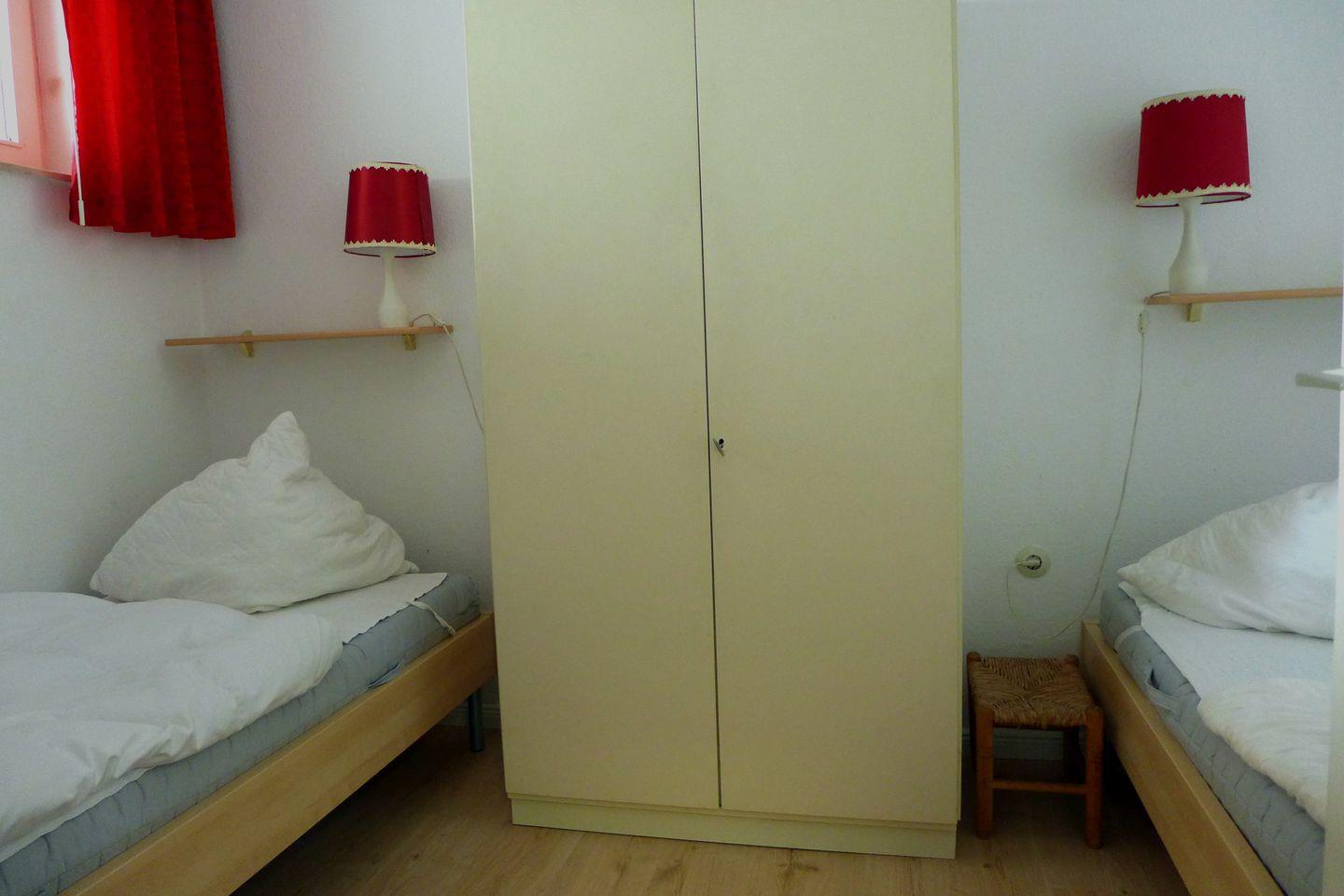 Die Einrichtung ist einfach und praktisch mit einer separaten Küche die einen Backofen und vier Platten Herd beinhaltet. Der Clou, von der Küche aus hat man durch ein großes Fenster den Blick ins Wohnzimmer, die mit einer Essecke und einer Fernsehecke ausgestattet ist. Im Schlafzimmer findet man 2 Einzelbetten und falls doch einer auswandern möchte, kann im Wohnzimmer das Schlafsofa zum Einsatz kommen. Das Bad mit DU/WC ist praktisch und einfach gehalten.