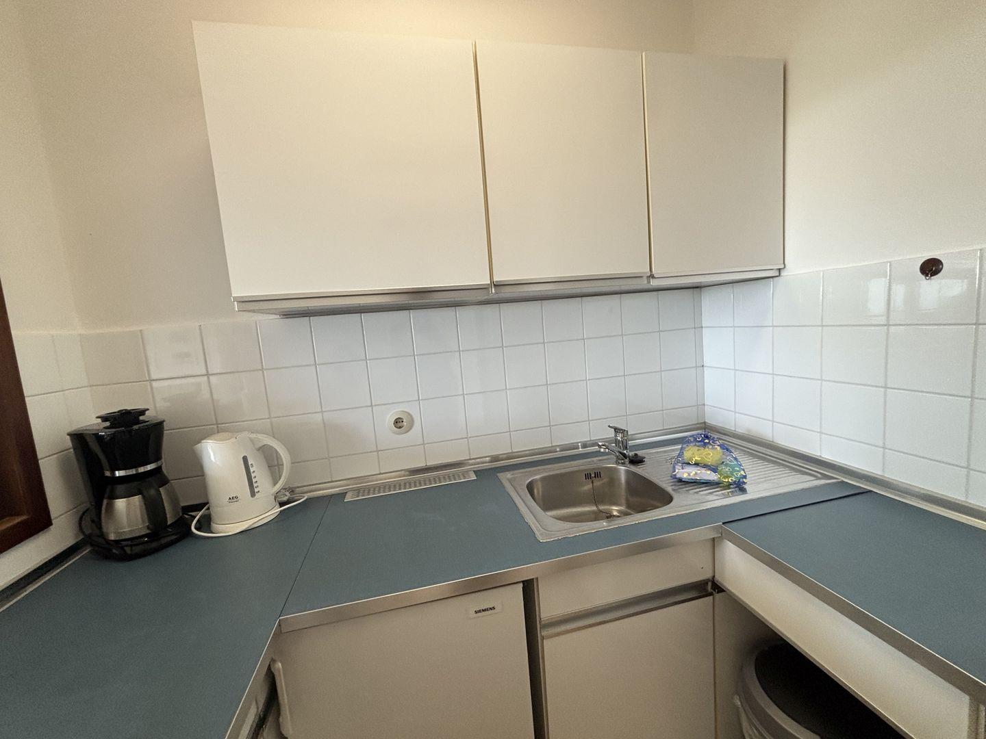 Die Einrichtung ist einfach und praktisch mit einer separaten Küche die einen Backofen und vier Platten Herd beinhaltet. Der Clou, von der Küche aus hat man durch ein großes Fenster den Blick ins Wohnzimmer, die mit einer Essecke und einer Fernsehecke ausgestattet ist.