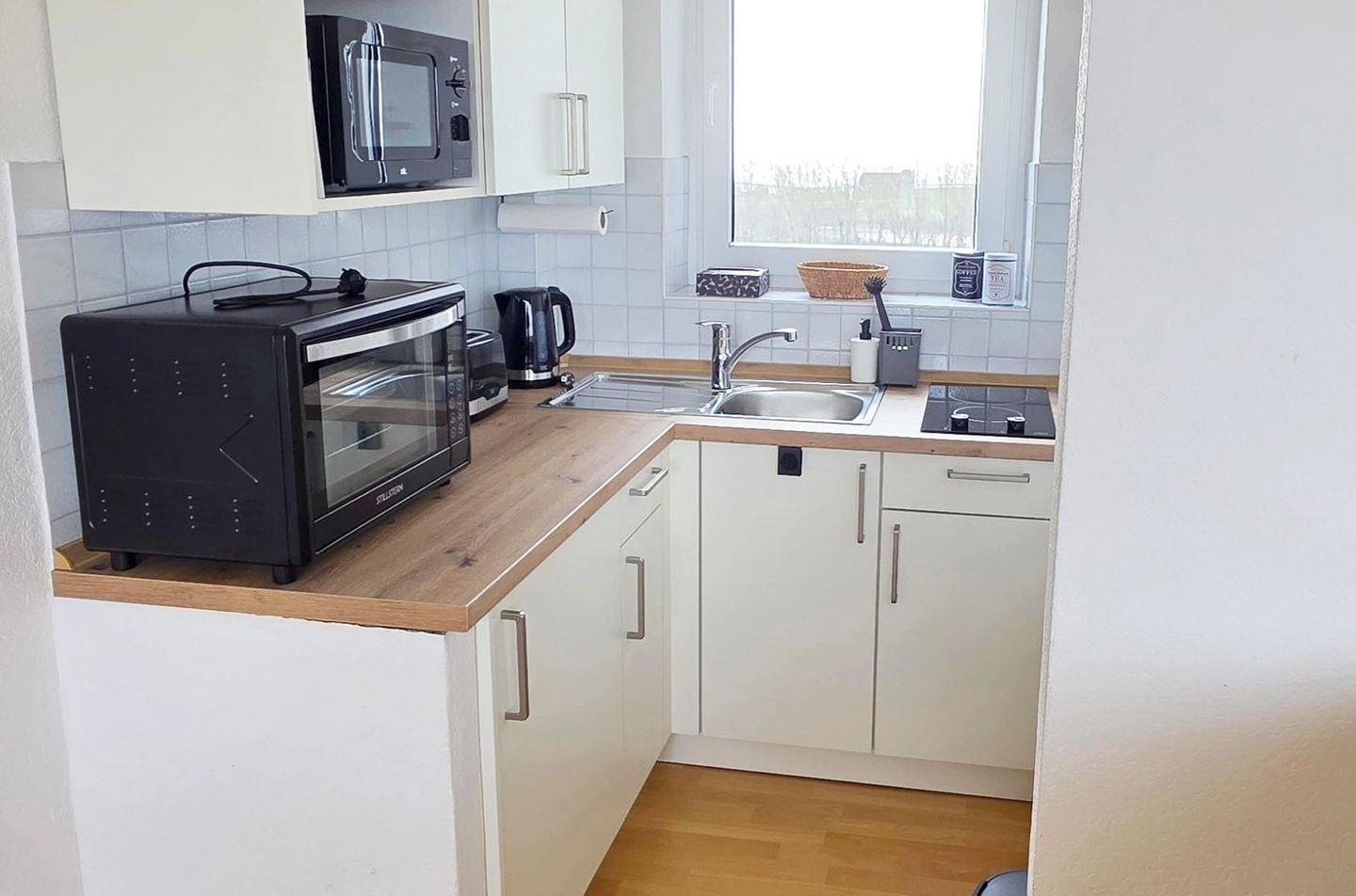 Stilvoll eingerichtete Wohnung mit Rundumblick in der 7`ten Etage. Auf dem Balkon genießen Sie ab dem späten Nachmittag die Sonne, aus der Küche haben Sie den Blick zum Meer. Der Wohnraum wird durch die Wandbetten im Handumdrehen zum Schlafraum. Die Wohnung verfügt über Laminatboden.