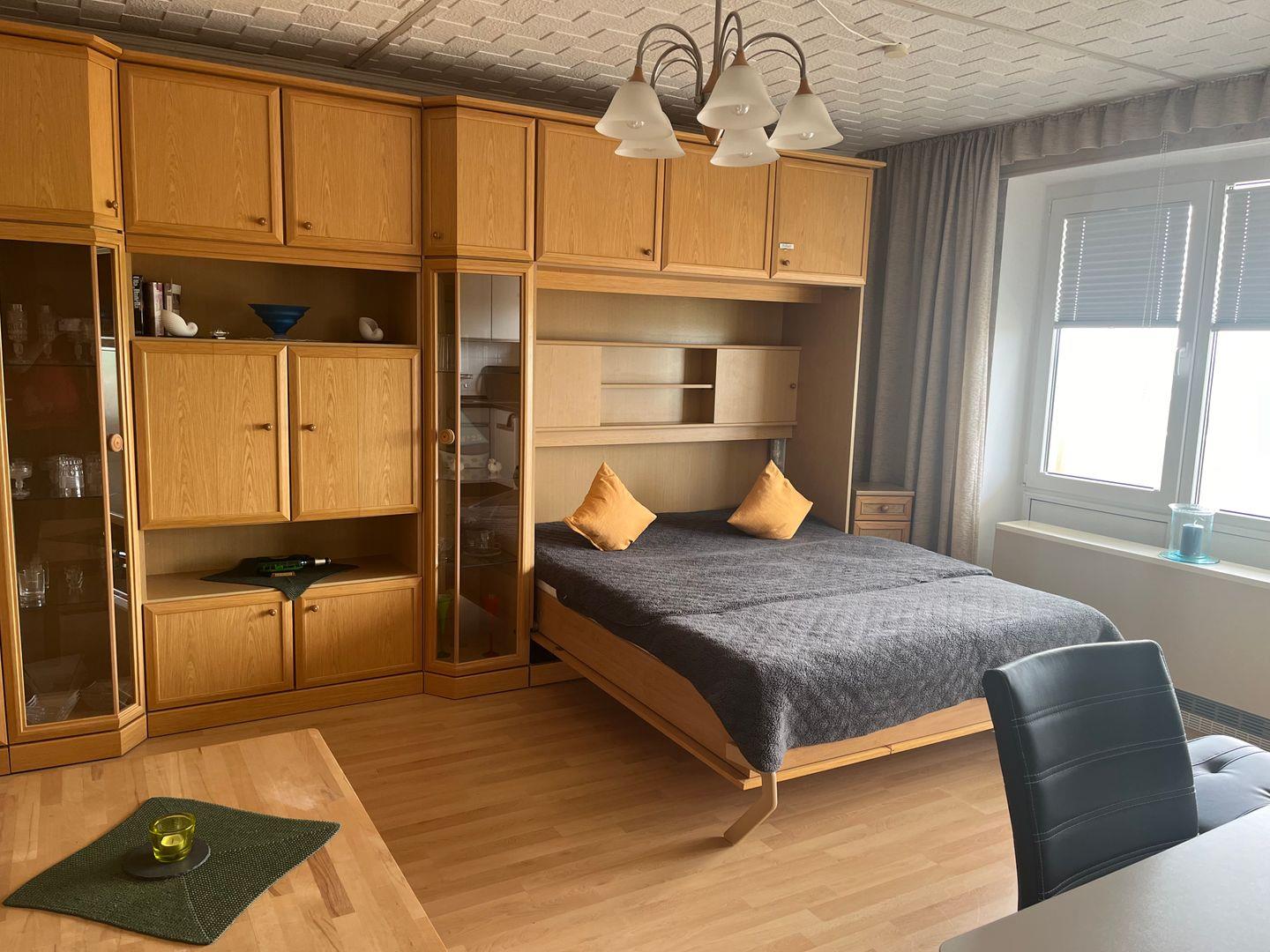 Stilvoll eingerichtete Wohnung mit Rundumblick in der 7`ten Etage. Auf dem Balkon können Sie die Nachmittagssonne genießen und Ihren Blick über das weite Land schweifen lassen. Der Wohnraum wird durch die Wandbetten im Handumdrehen zum Schlafraum. In der kleinen Küche mit Fenster finden Sie alles was Sie brauchen. Die Wohnung verfügt über Laminatboden.