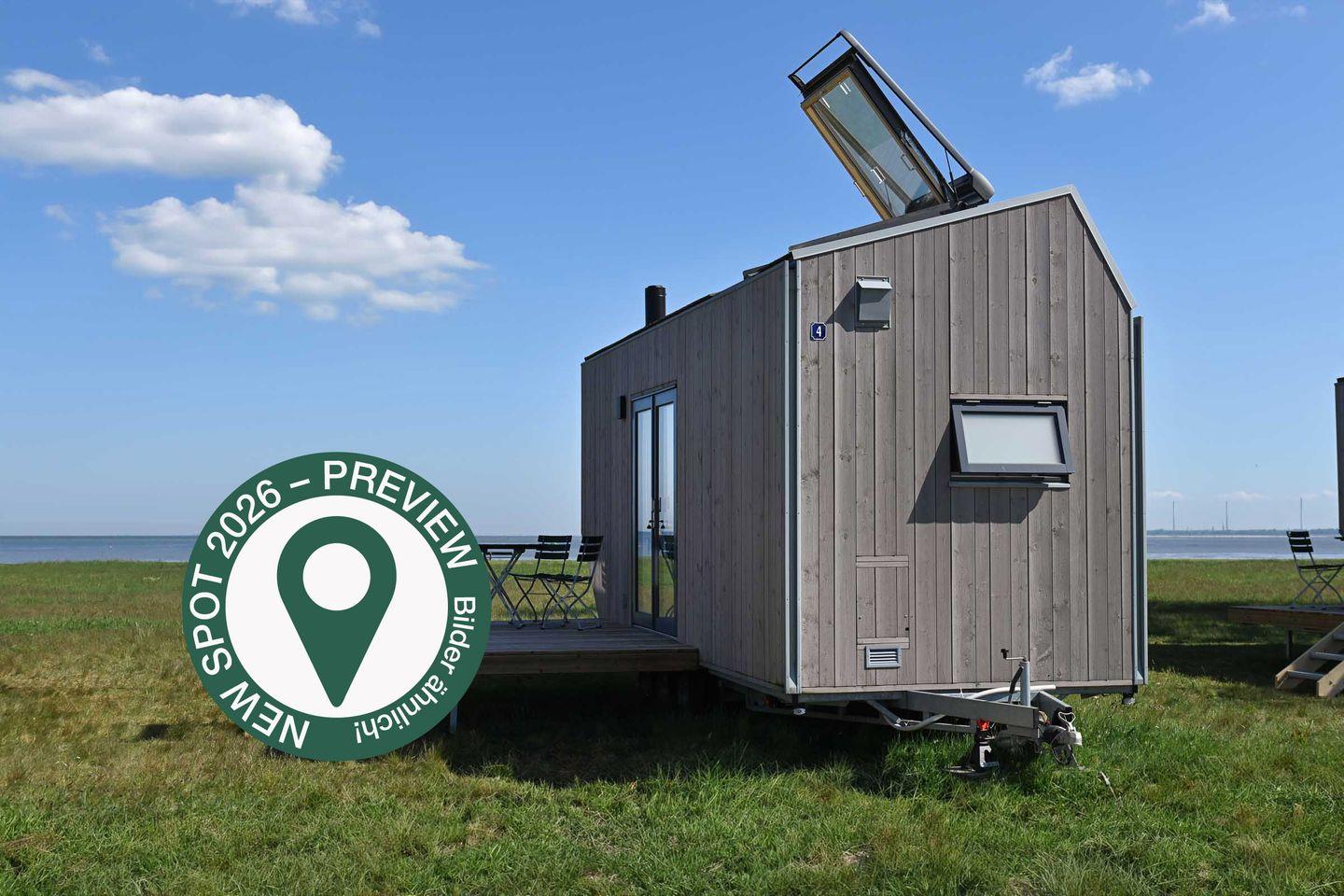 Erleben Sie nachhaltigen Komfort im Green Tiny House Pioneer mit Meerblick und FKK-Bereich in Wangerland.