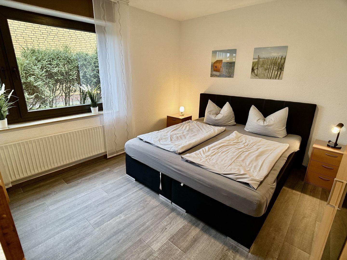 Die Ausstattung umfasst ein komfortables Boxspringbett, ein Etagenbett und ein Schlafsofa.