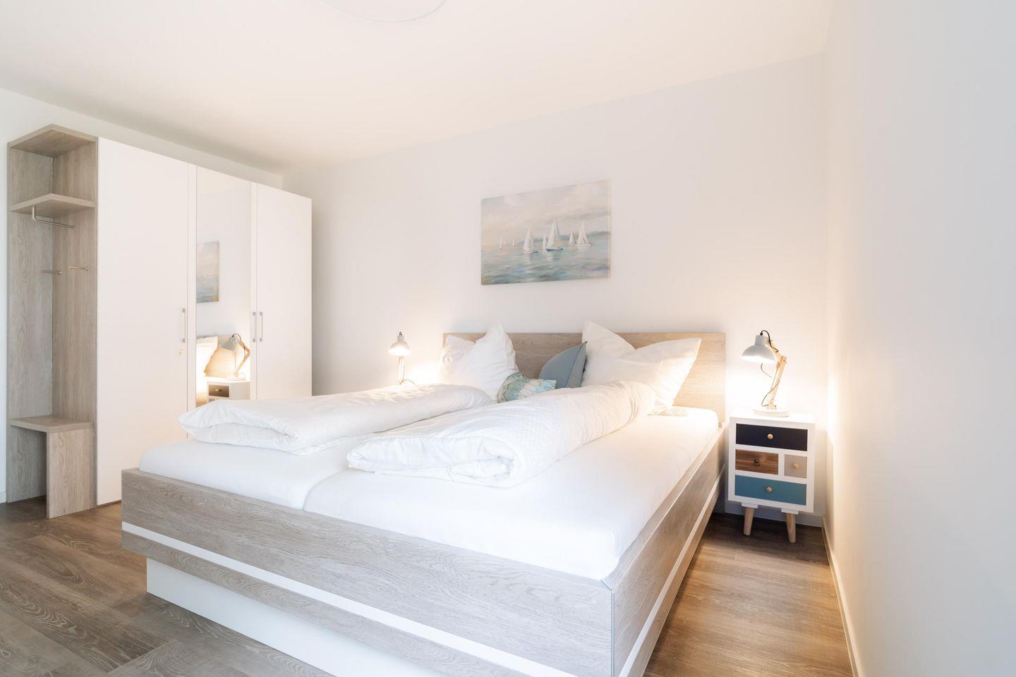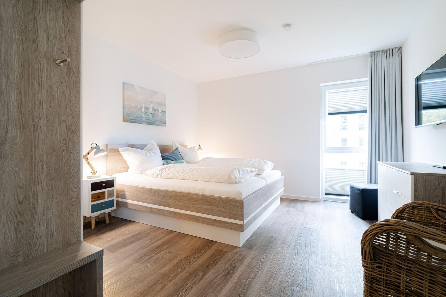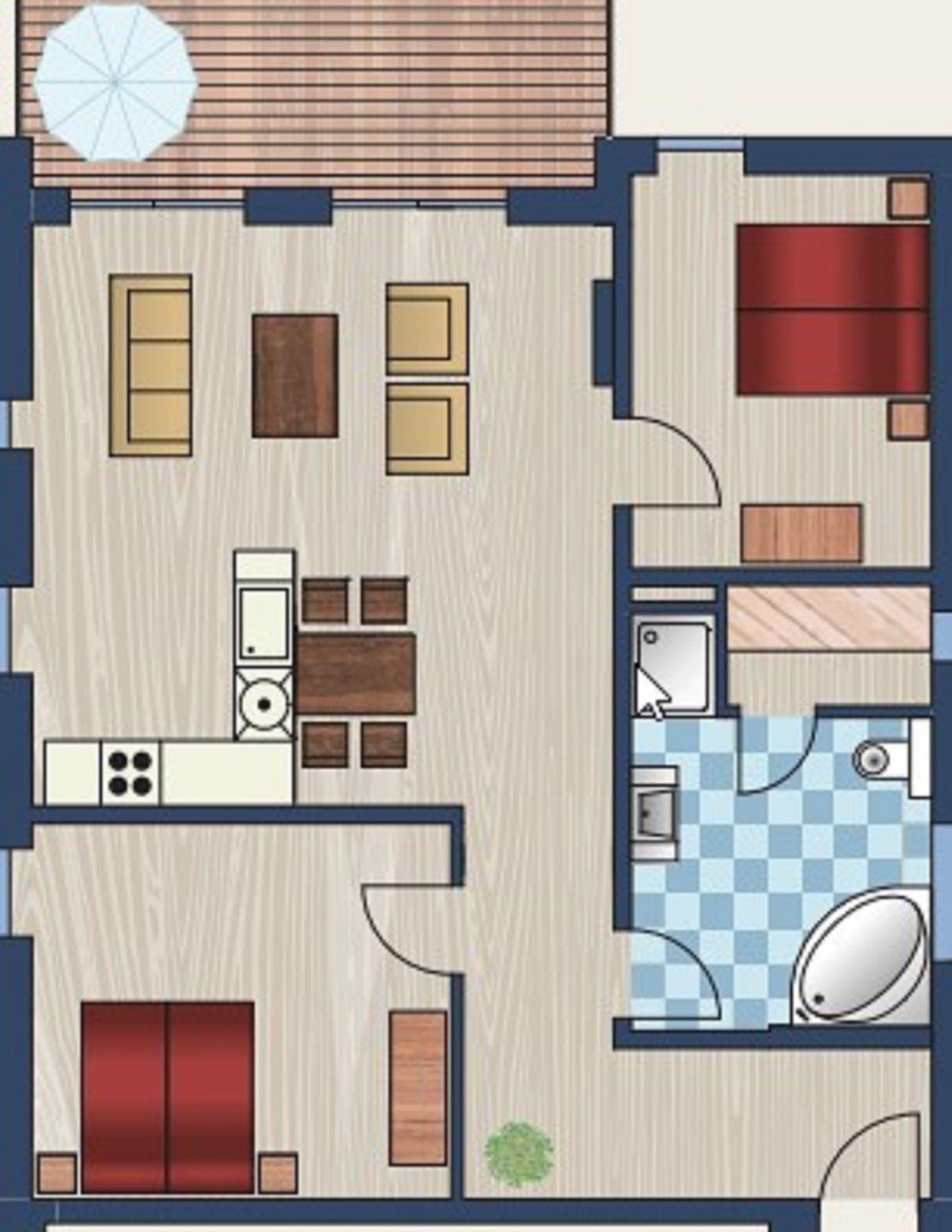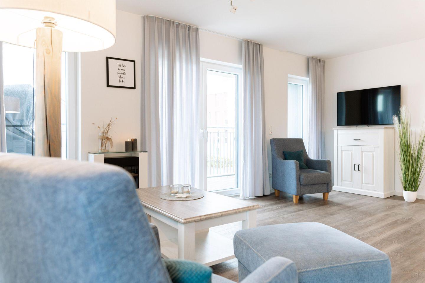 Euer Balkon bietet nicht nur den Blick über die Anlage, sondern auch einen eigenen Strandkorb. Lasst die Seele baumeln und genießt die Nordseeluft. Ein Bollerwagen steht bereit für Eure Ausflüge mit den Kleinen. Erkundet die Umgebung spielend leicht und ohne lästiges Schleppen.