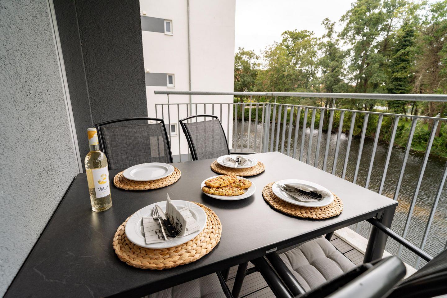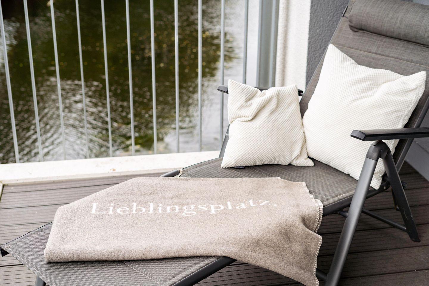 Genießt traumhafte Sonnenuntergänge und den Blick auf das Wasser der Graft vom Balkon unserer Ferienwohnung. Der Balkon ist mit bequemen Stühlen und einem Tisch ausgestattet – perfekt für ein gemütliches Frühstück oder ein Glas Wein am Abend.