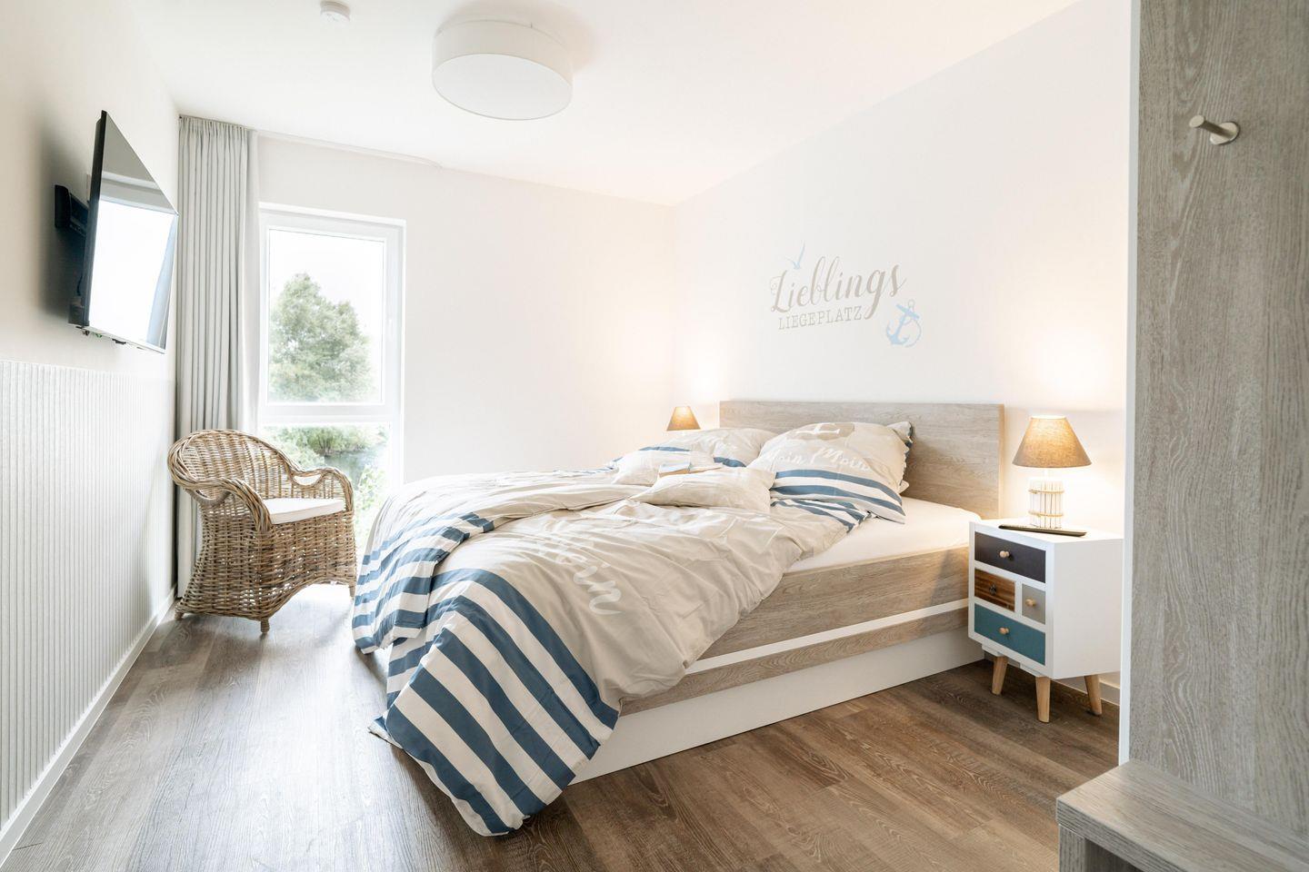 Die zwei Schlafzimmer sind wahre Oasen der Ruhe. Jedes Zimmer ist mit einem großen Bett und großzügigen Kleiderschränken ausgestattet. Hier findet Ihr viel Platz für Eure Urlaubsgarderobe und genug Raum zum Träumen.