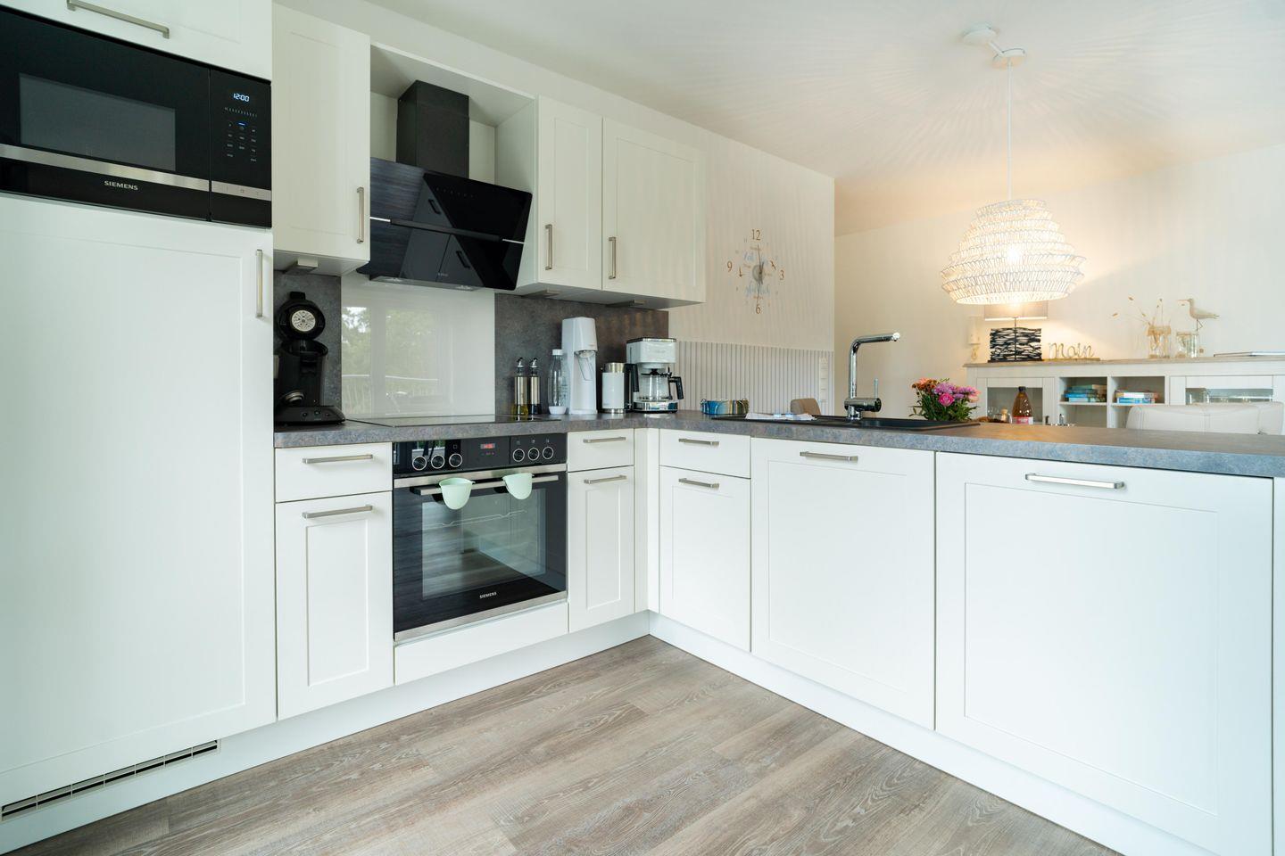 Die Küche in "Graftkieker" ist bestens ausgestattet. Freut Euch auf einen modernen Opti-Grill, einen Soda-Stream und alle nötigen Küchenutensilien, von der Suppenkelle bis zur Senseo-Espressomaschine. Hier könnt Ihr gemeinsam kochen und genießen. Der großzügige Essbereich lädt zu langen, gemütlichen Mahlzeiten ein. Erlebt unvergessliche, gemeinsame Momente!