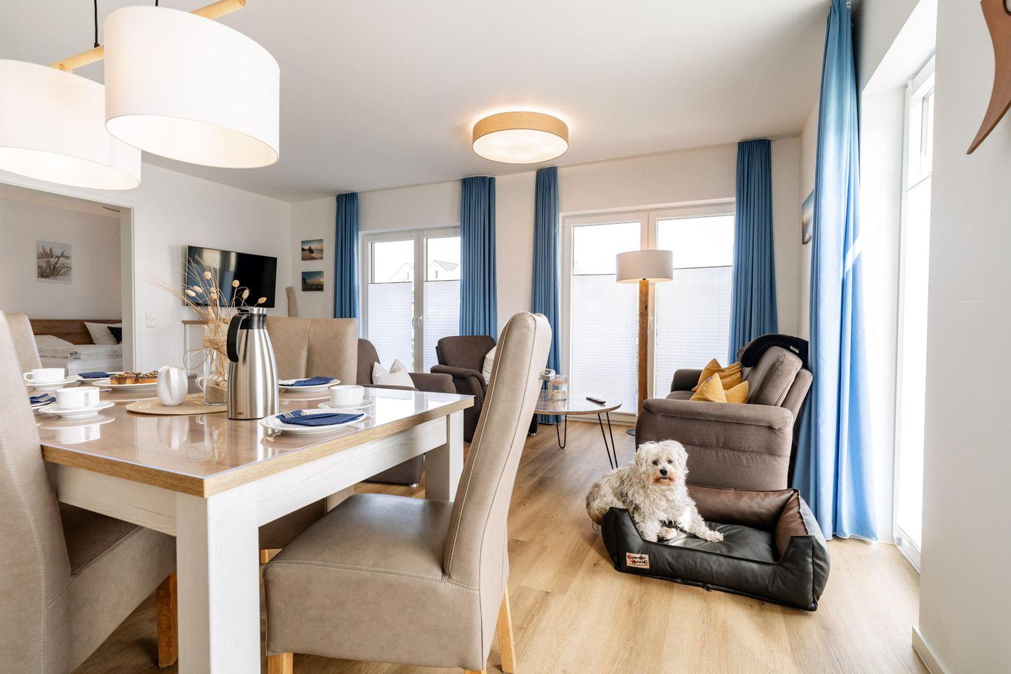 Auch Ihr Hund ist in unserer „Nordsee-Oase“ herzlich willkommen! Wir bieten ein umfangreiches Hundepaket mit einem komfortablen Hundesofa und Näpfen. Der barrierefrei zugängliche Strand lädt zu längeren Spaziergängen entlang der Küste ein und bietet auch für Ihren vierbeinigen Freund viel Raum zum Entspannen.