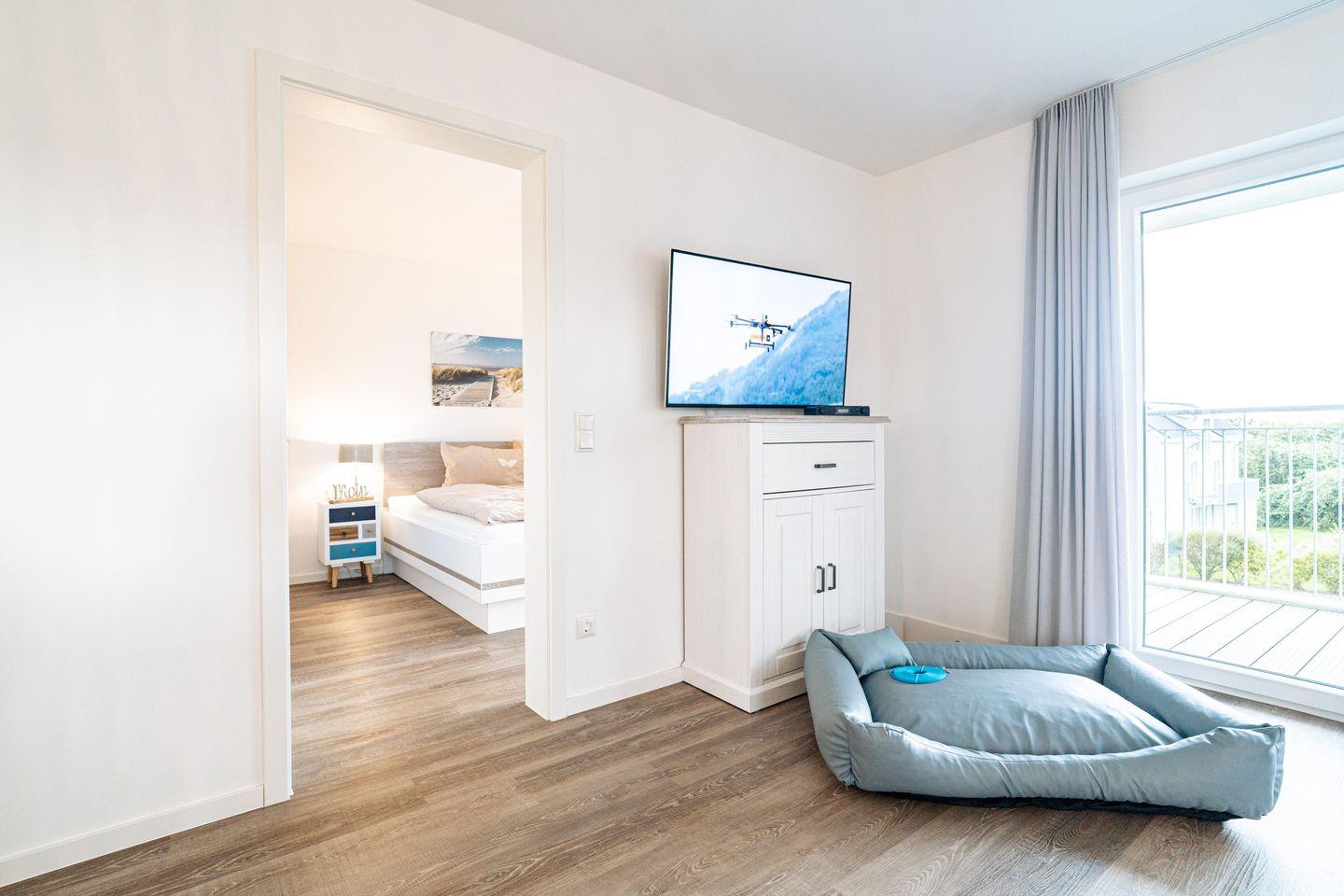 Euer vierbeiniger Freund soll Euch in den Urlaub begleiten? Kein Problem! Unsere „Seabreeze“ heißt auch Hunde herzlich willkommen. Ein bequemes Hundebett und eine praktische Schleppleine sind bereits vorhanden. Der Hundestrand ist nur 300 Meter entfernt, perfekt für lange, ausgedehnte Spaziergänge am Wasser.