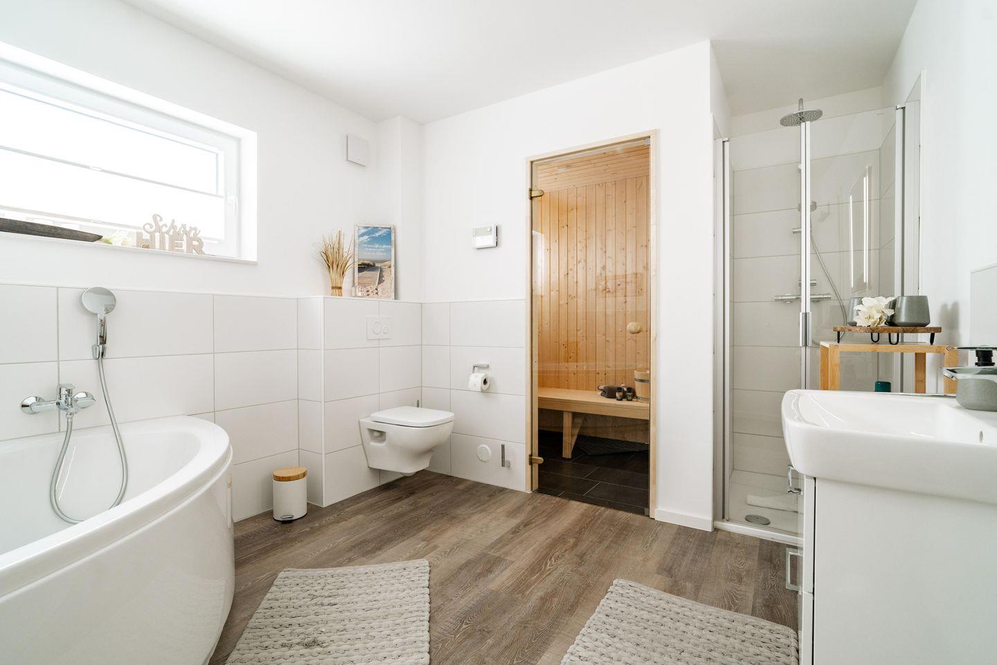 Ein besonderer Höhepunkt ist die private Sauna im Badezimmer. Hier könnt Ihr nach einem langen Strandspaziergang die Wärme genießen und völlig entspannen. Das Badezimmer ist zudem mit einer Badewanne und einer leicht zugänglichen Dusche ausgestattet.