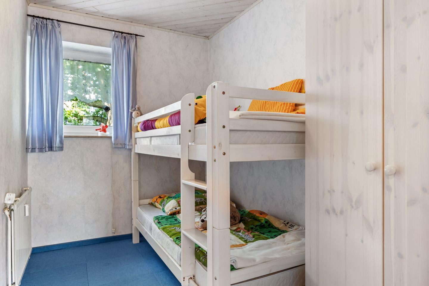 Zwei gemütliche Schlafzimmer mit Doppelbett unt Etagenbett