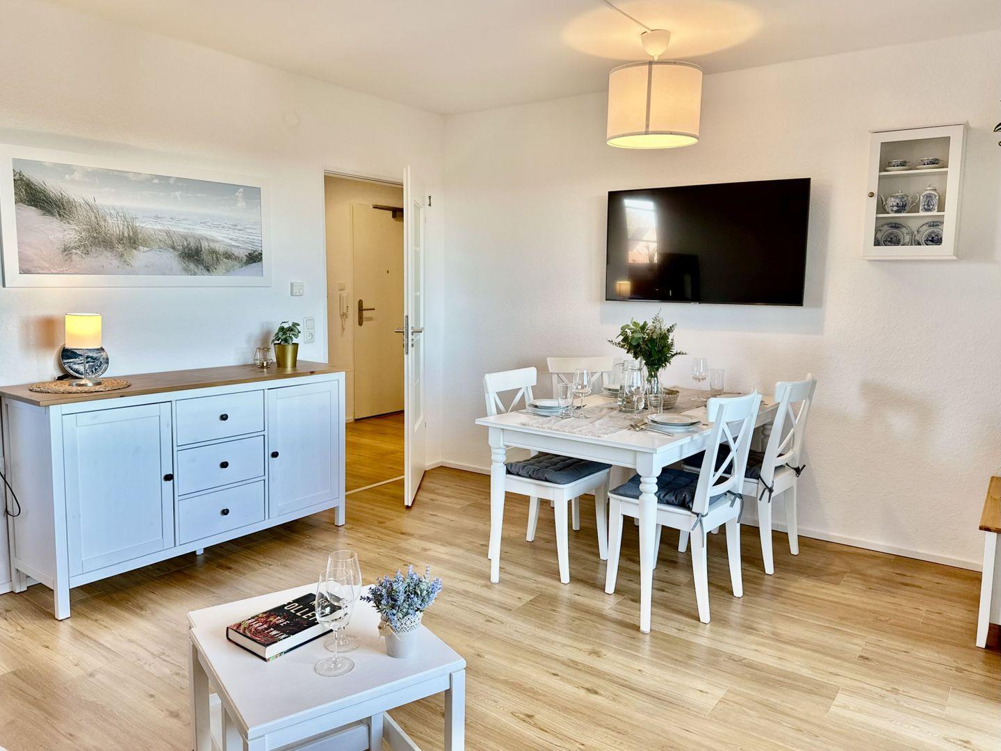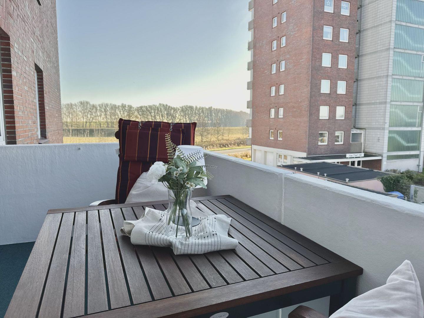 Moderne Ferienwohnung Nordseeglanz in Horumersiel mit Balkon, Schwimmbad und Parkplatz für entspannte Urlaubstage.