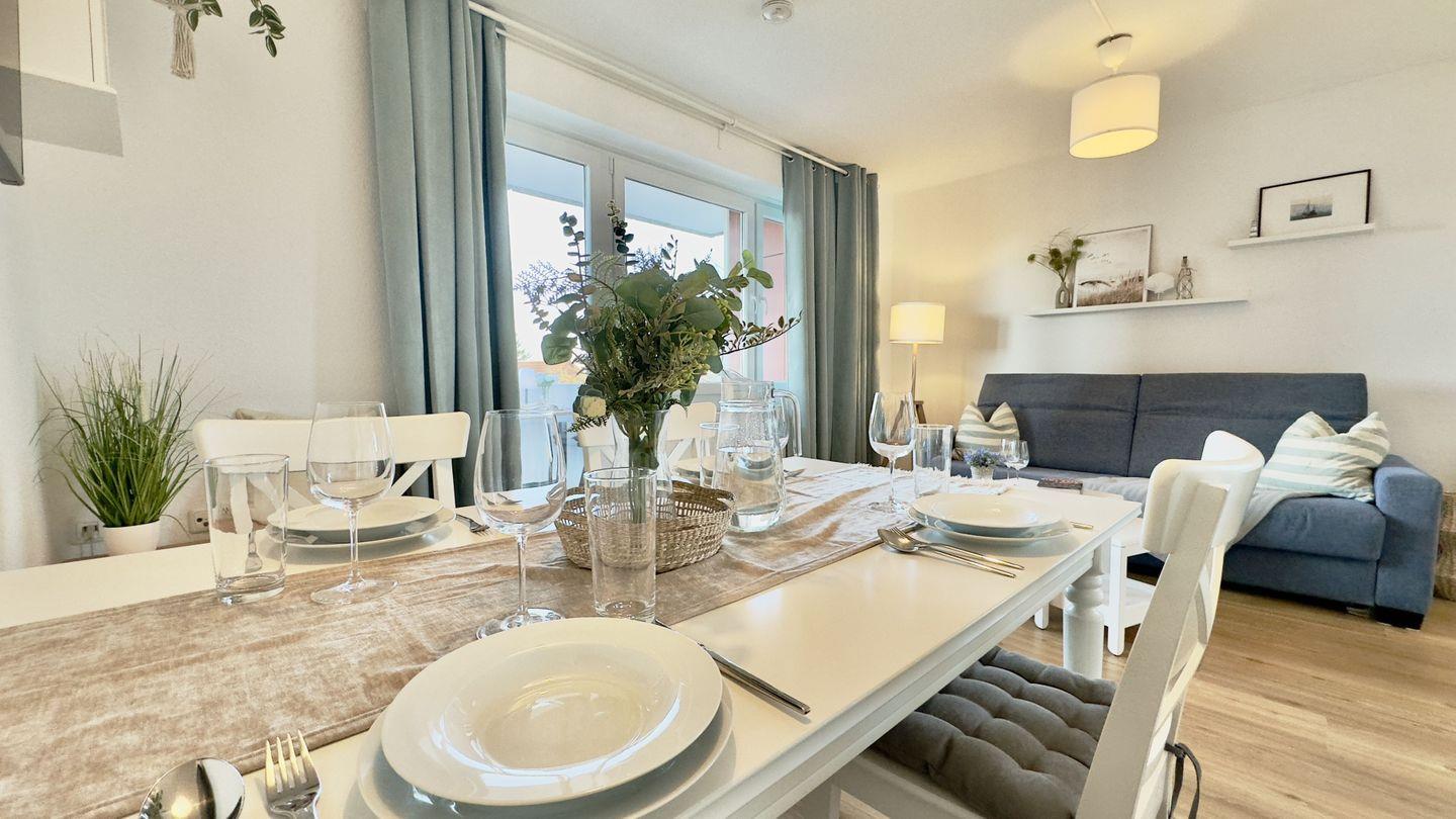 Die Wohnung besticht durch ihre Liebe zum Detail und die helle, moderne Einrichtung.
