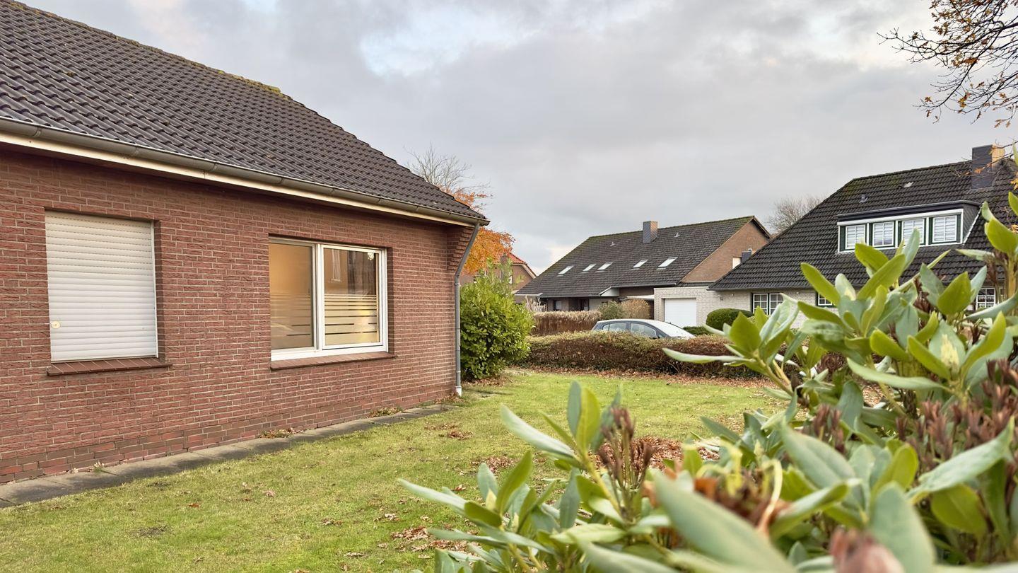 Ein weiteres Highlight ist die überdachte Terrasse mit Windschutz, die selbst an weniger sonnigen Tagen zum Verweilen einlädt. Der gepflegte Garten bietet viel Platz zum Entspannen, auch für Ihren Hund.